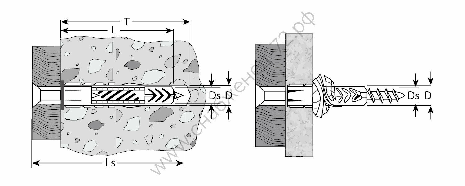 Универсальный дюбель ЗУБР полипропиленовый без бортика с шурупом 6 х 52 мм 8 шт. ( 4-301196-06-052 )