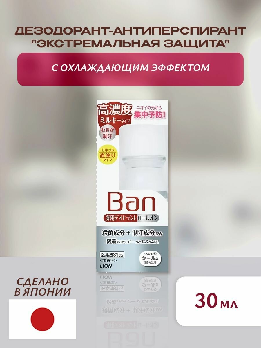 Дезодорант-антиперспирант LION "Ban" "Экстремальная защита" с охлаждающим эффектом, без аромата