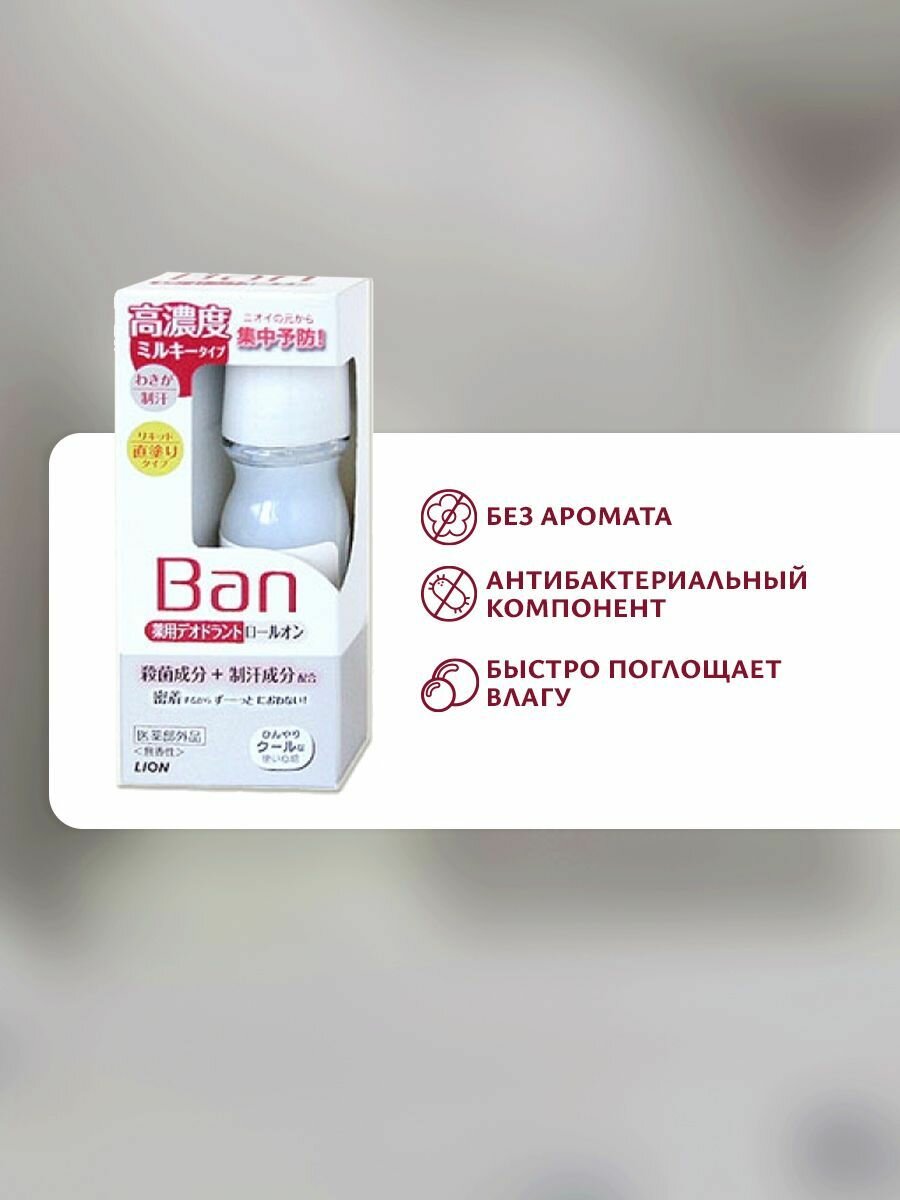 Lion Ban Medicated Deodorant Концентрированный молочный роликовый дезодорант-антиперспирант для профилактики неприятного запаха без запаха 30 мл