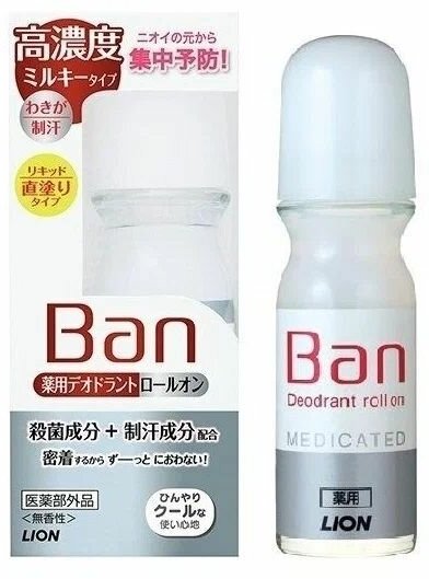 Дезодорант-антиперспирант шариковыйLion Япония Ban Medicated без аромата, 30 мл