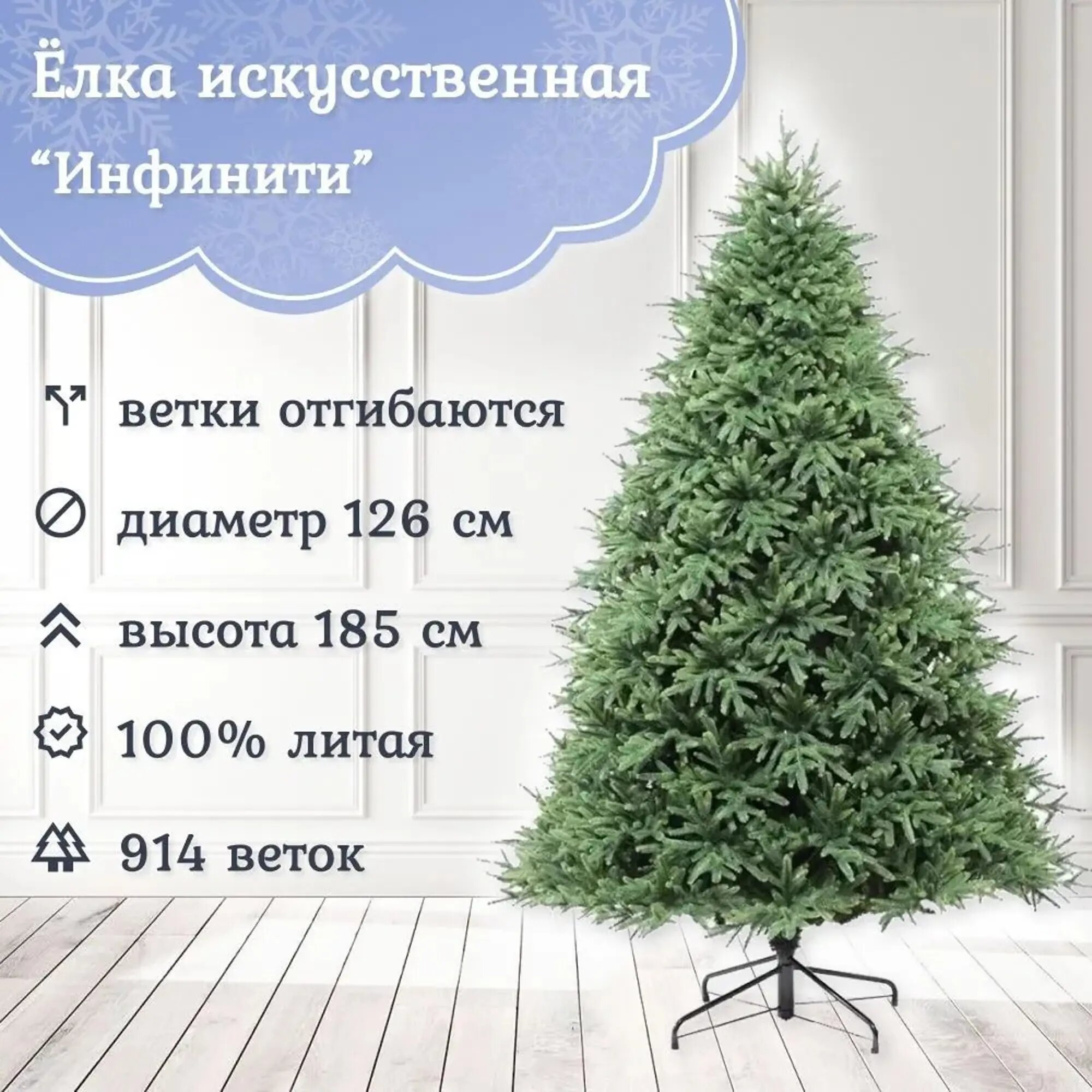 Искусственная ель "Инфинити", хвоя - литая РЕ+PVC, зелёная, 1,85 м, царь елка, EverChristmas