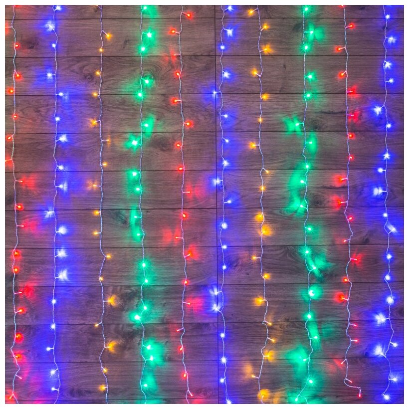 Светодиодная гирлянда NEON-NIGHT "Дождь" 2.5х2 м, 8 режимов, 300 разноцветных светодиодов, прозрачный провод