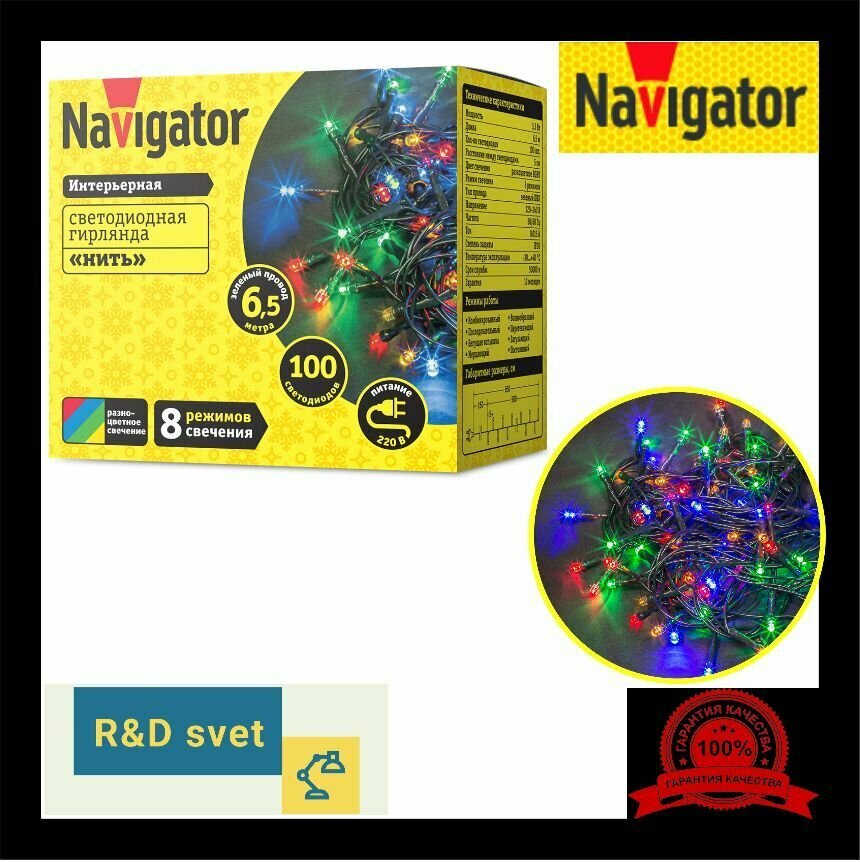 Гирлянда 61 803 NGF-S01-100RGBY-5-6.5m-230-C8-G-IP20 Navigator 61803 ( 1шт. )