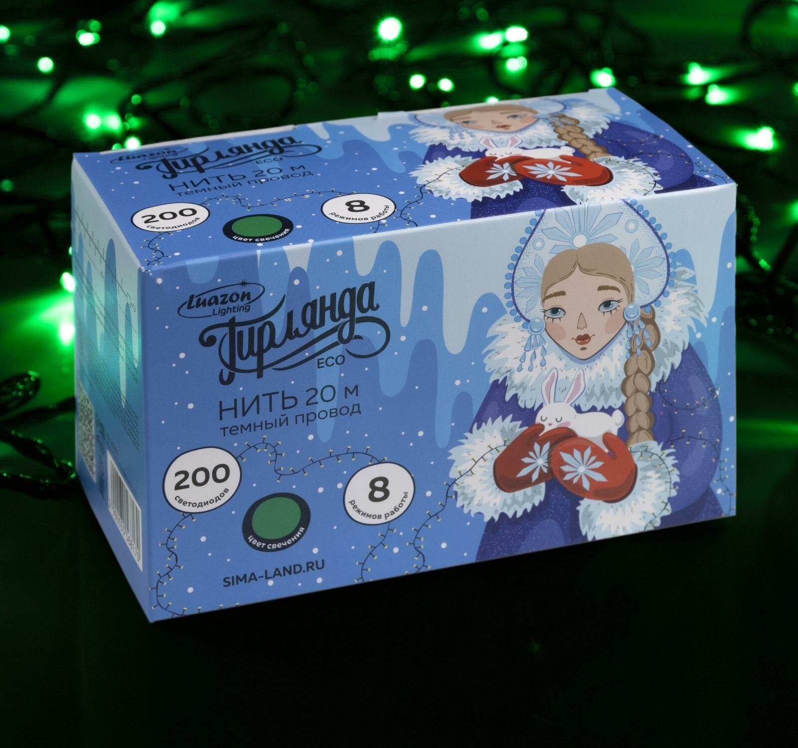Купить Luazon Lighting Гирлянда «Нить» 20 м, IP20, тёмная нить, 200 LED, свечение зелёное, 8 режимов, 220 В