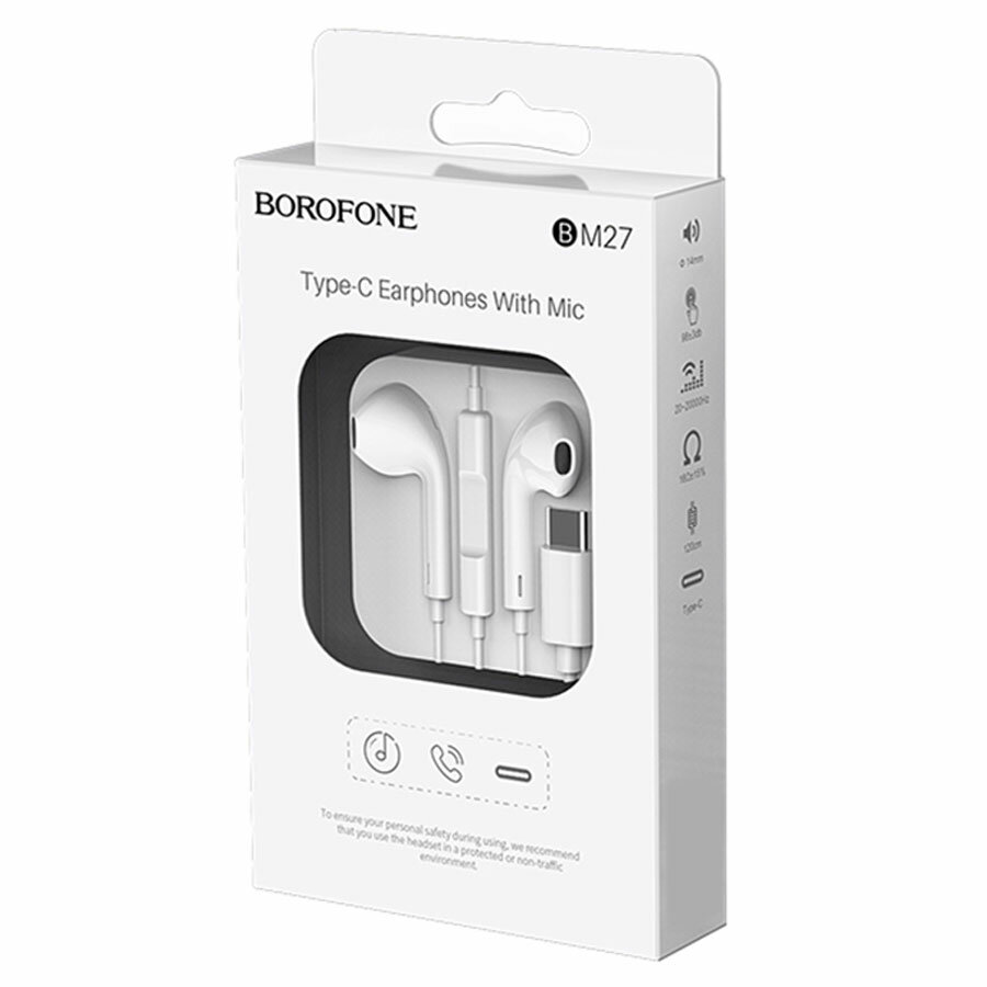 Наушники Borofone BM27, проводные, вкладыши, микрофон, Type-C, 1.2 м, белые