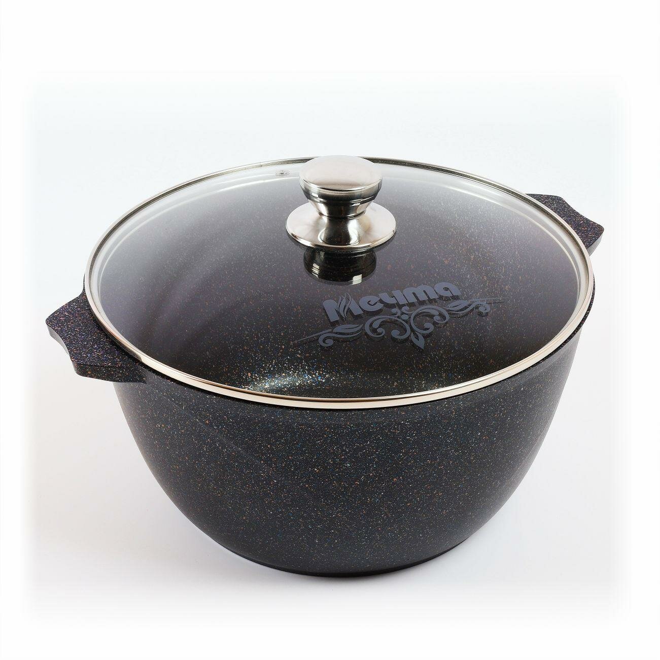 Кастрюля Мечта Гранит Black литая с антипригарным покрытием, со стеклянной крышкой, 6л, гранит black