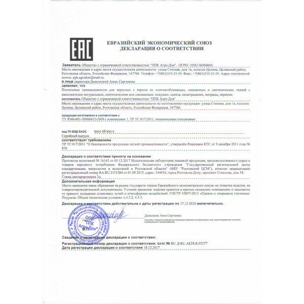 Одеяло Агро-Дон лоретта пух/сатин/хлопок тёплое 172х205 см