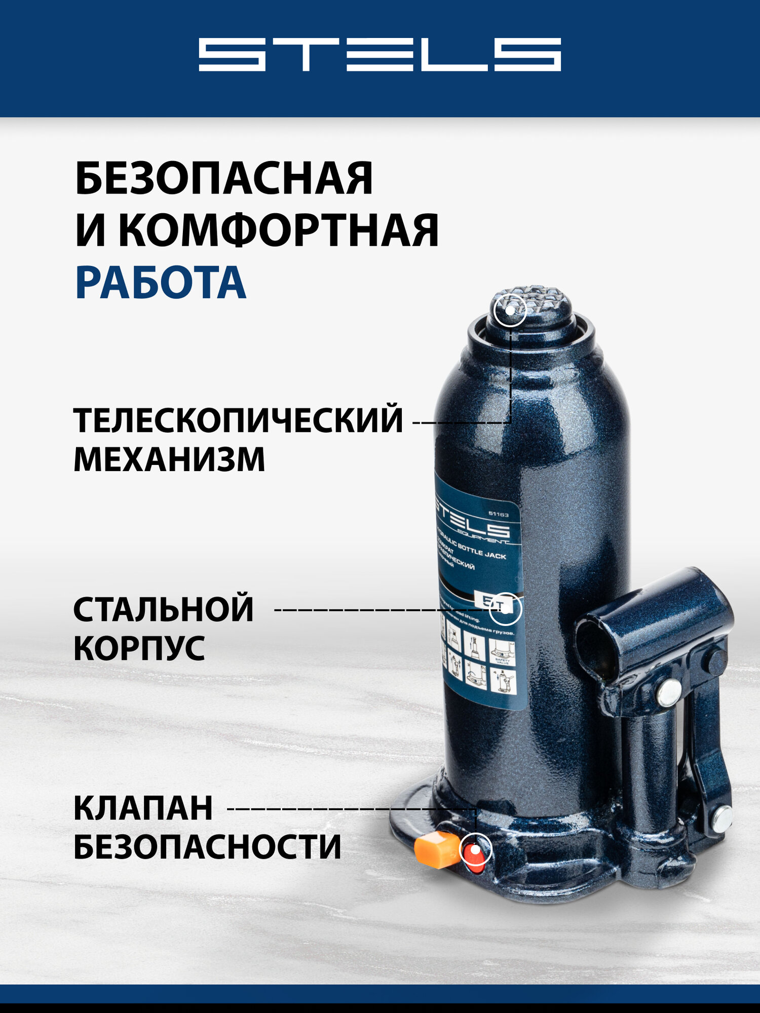 Ниже Вы можете прочитать отзывы на Домкрат гидравлический бутылочный Stels 5 т, h подъема 207-404 мм 51163, ознакомится с подробными характеристиками, посмотреть интересные обзоры и фотографии на Домкрат гидравлический бутылочный Stels 5 т, h подъема 207-404 мм 51163.