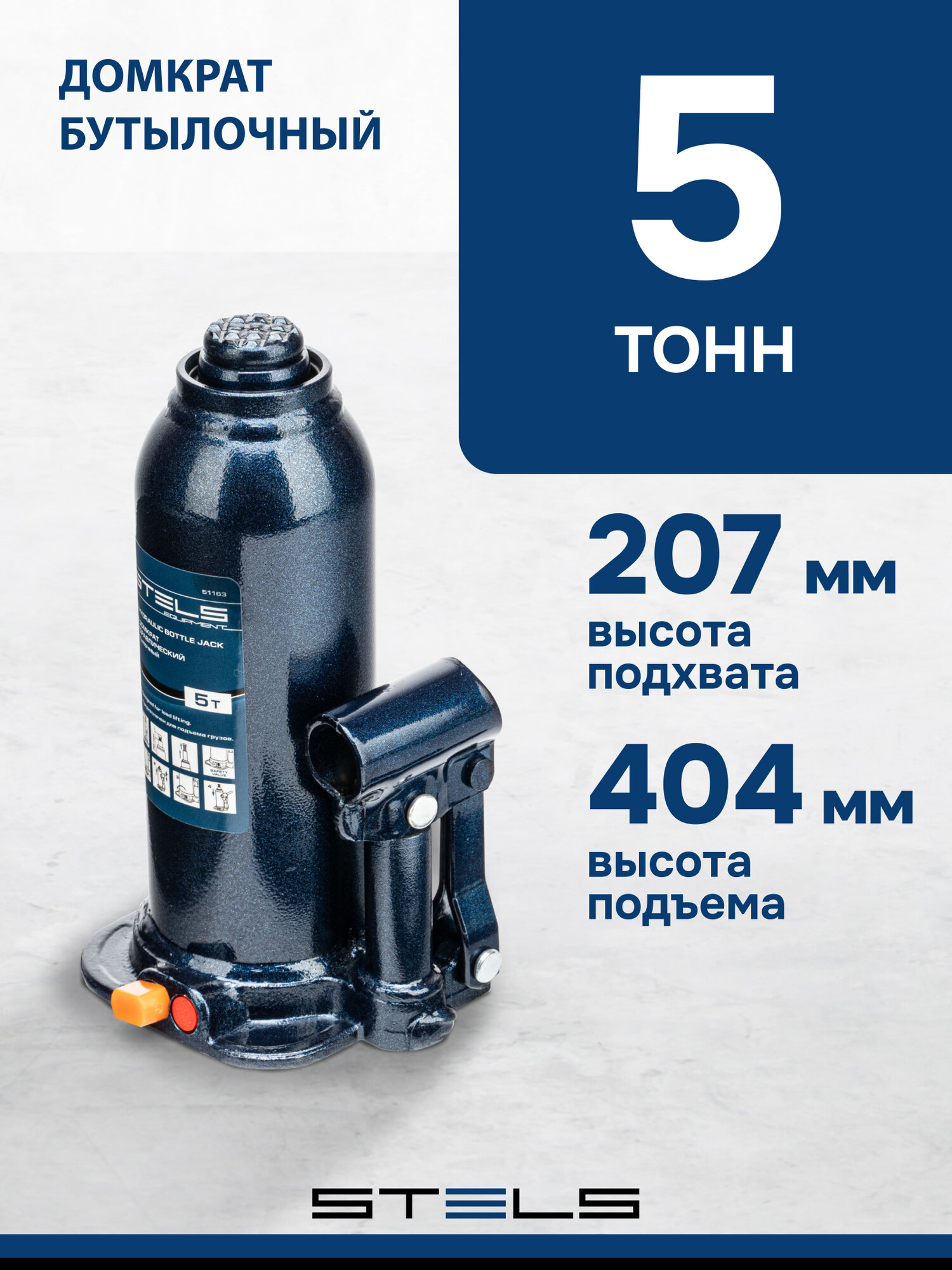 Домкрат гидравлический бутылочный, 5 т, h подъема 207-404 мм Stels, арт. 51163