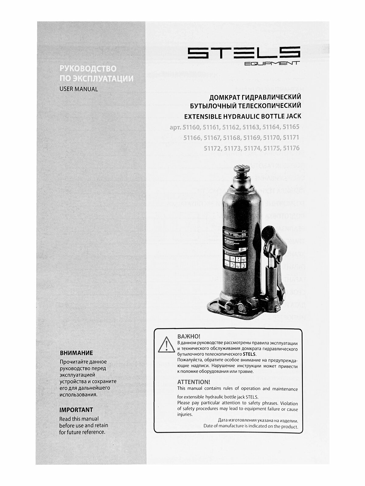 Домкрат гидравлический бутылочный STELS EQUIPMENT STELS 3 т, h подъема 188–363 мм, 51161