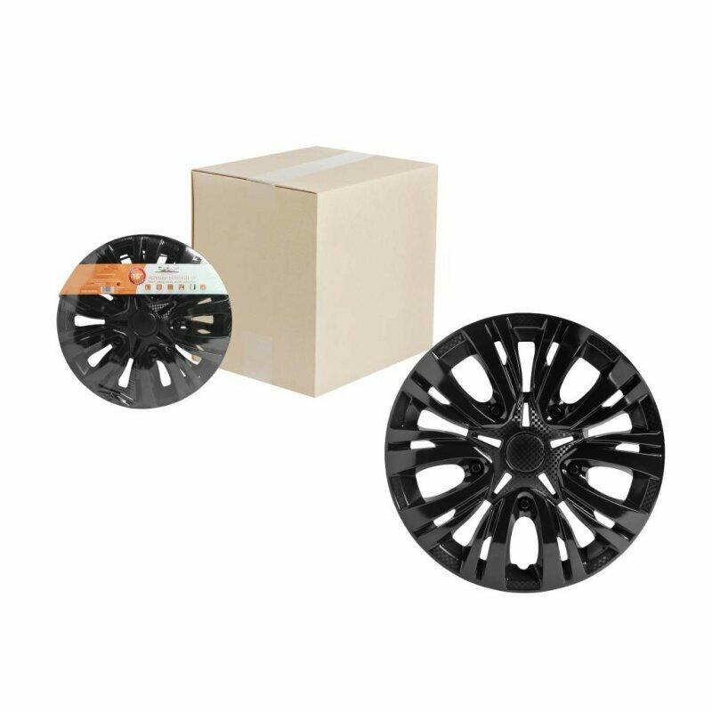 Колпаки колесные 14" "Лион", черный глянец, карбон, компл. 2 шт.