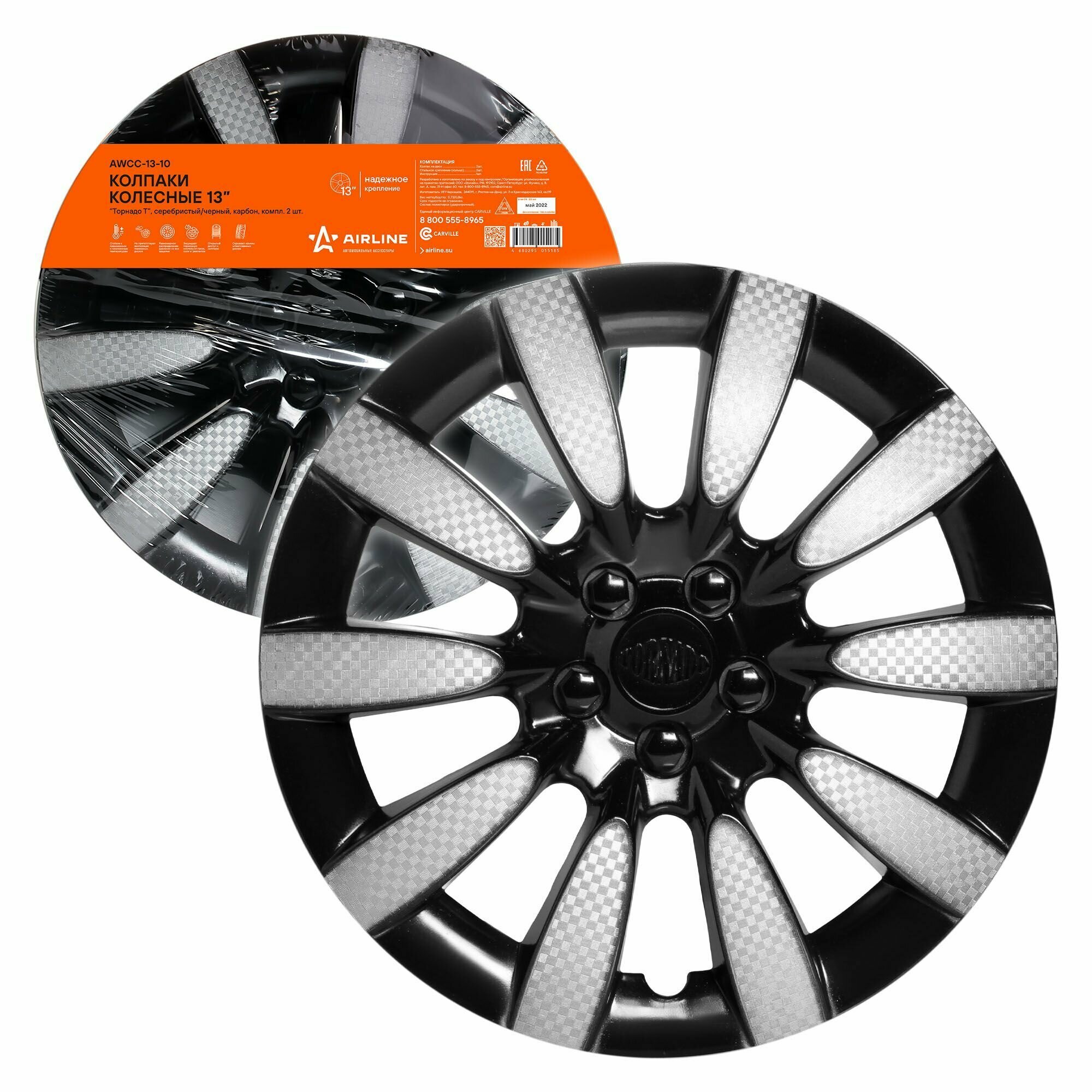 AIRLINE AWCC1310 Колпаки колесные 13" "Торнадо Т". серебристый/черный. карбон. (компл. 2 шт.) (AWCC-13-10)
