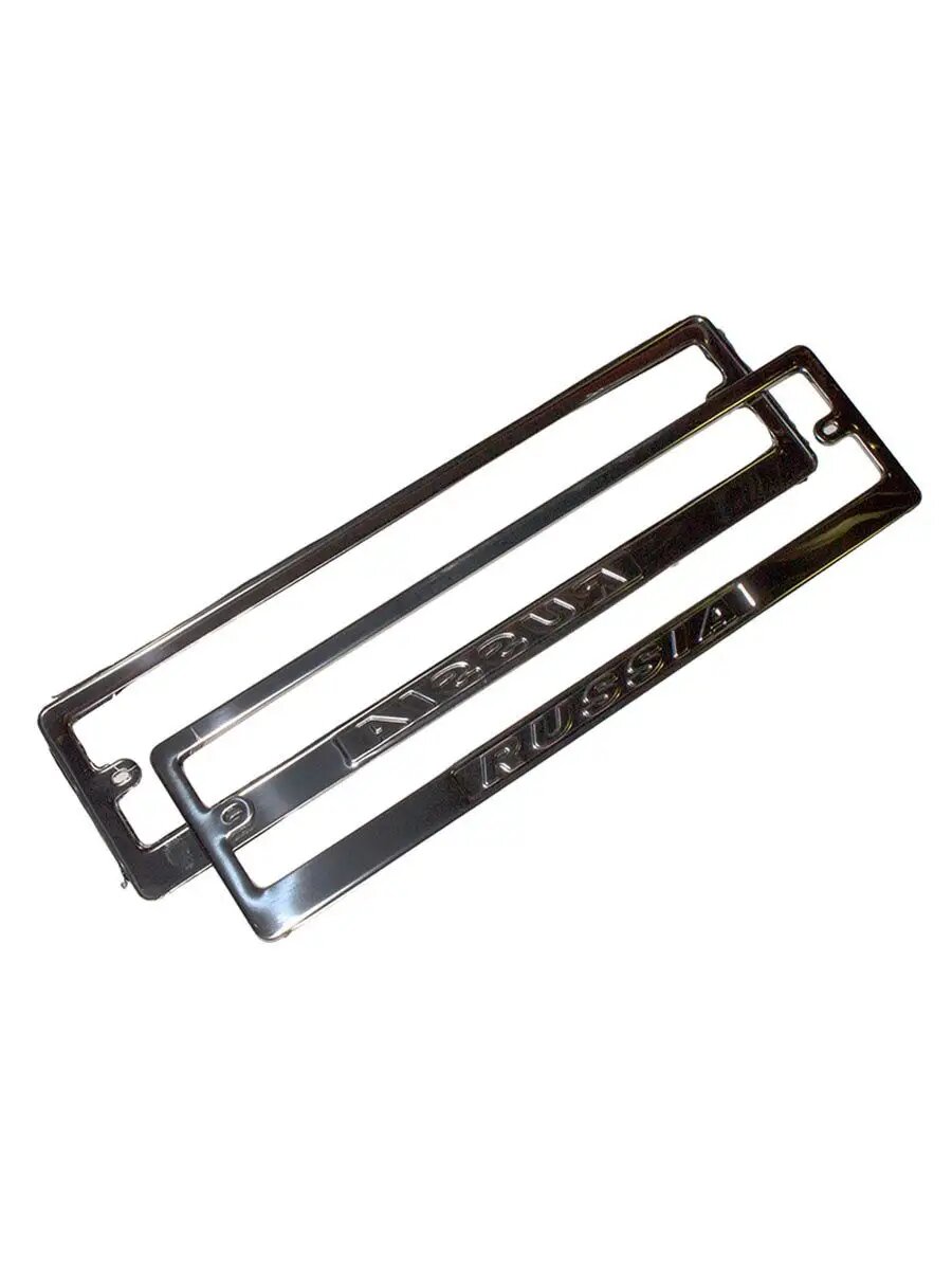 Купить Рамка номерного знака нержавеющая сталь безадаптерная штамп Russia (уп. 2 шт.)
