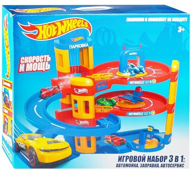 Игровой набор парковка "ХОТ вилс 3 в 1: автомойка, заправка, автосервис" 50х59х13,5 см.