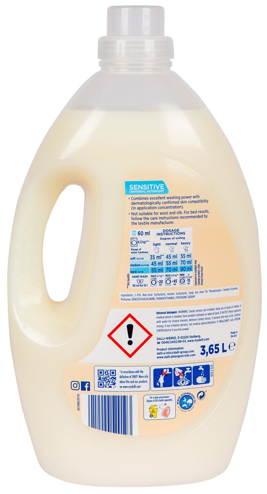 Гель для стирки DALLI Sensitive для детского белья и для чувствительной кожи, 100 стирок, 3.65 л