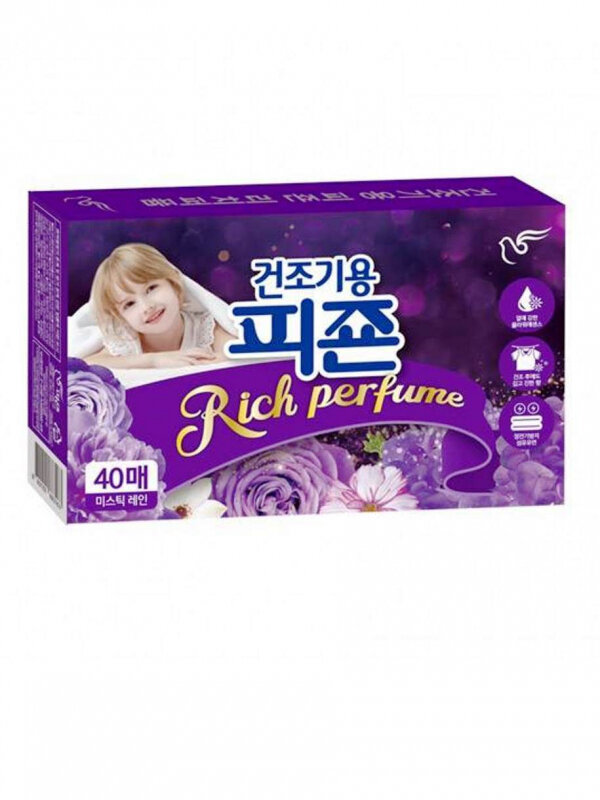 PIGEON Кондиционер для белья RICH PERFUME SIGNATURE DRYER SHEET Mystic Rain, 40шт