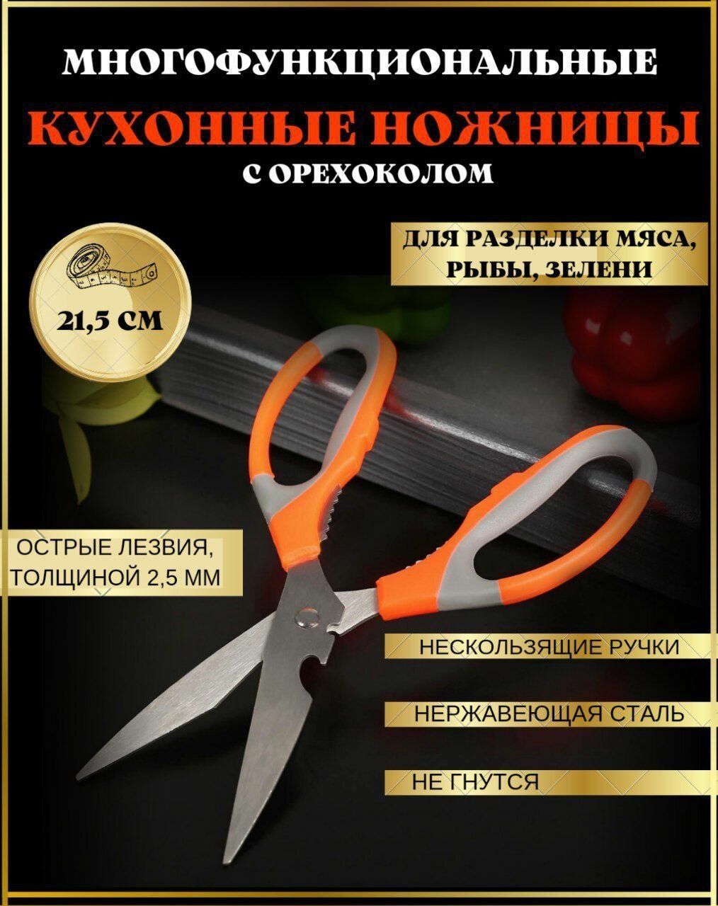 Ножницы кухонные 21см с орехоколом и открывалкой VETTA 884213 .