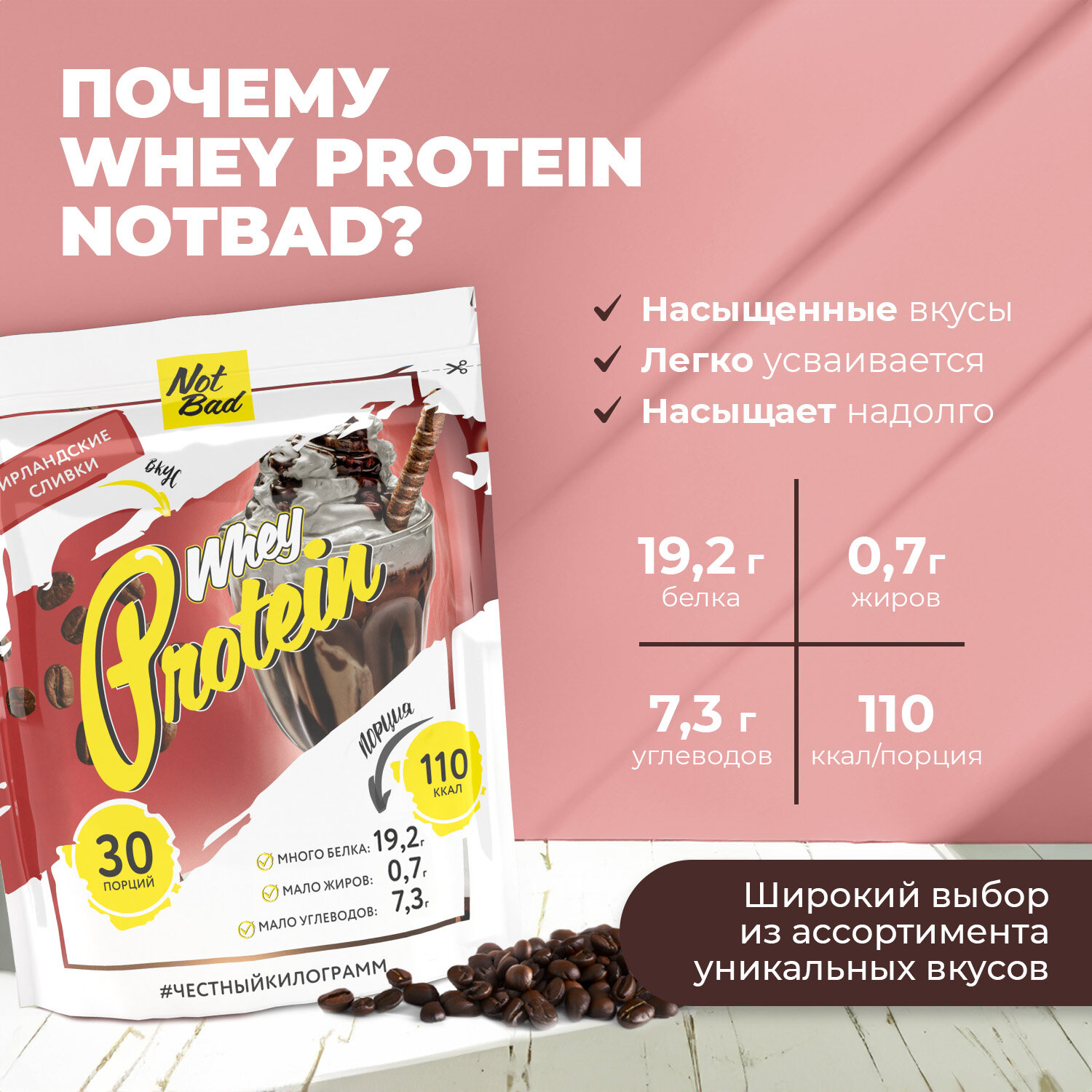 Купить NotBad Whey Protein 1000g (Ирландские сливки)