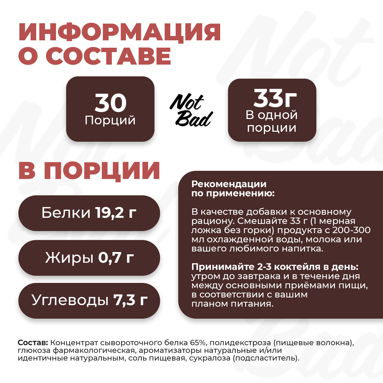 Ниже Вы можете прочитать отзывы на NotBad Whey Protein 1000g (Ирландские сливки), ознакомится с подробными характеристиками, посмотреть интересные обзоры и фотографии на NotBad Whey Protein 1000g (Ирландские сливки).