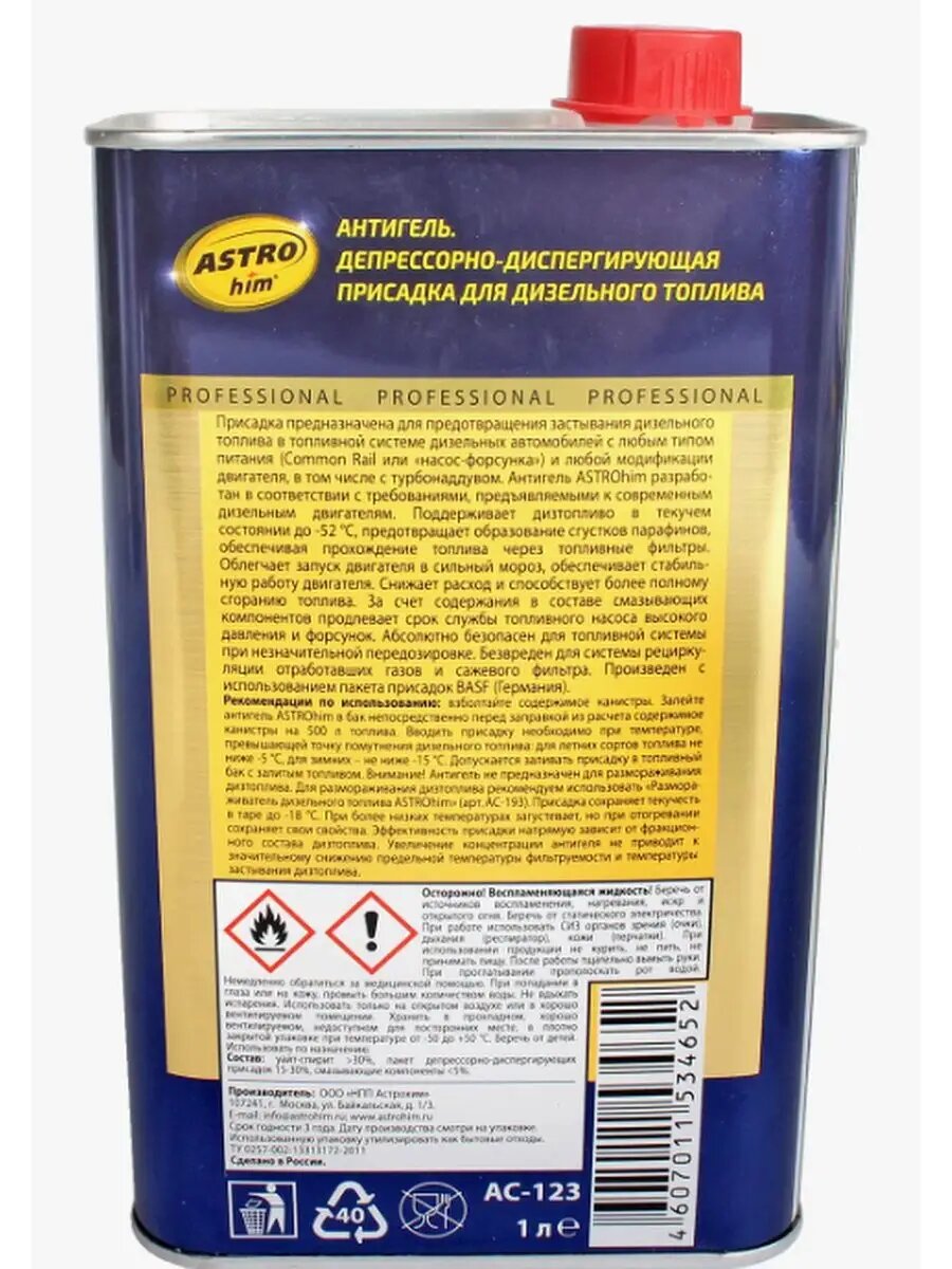 Присадка Депрессорная Astrohim "Антигель" Для Дизельного Топлива (На 500 Л), Жестяная Канистра 1 Л Ac-123 ASTROHIM арт. AC-123