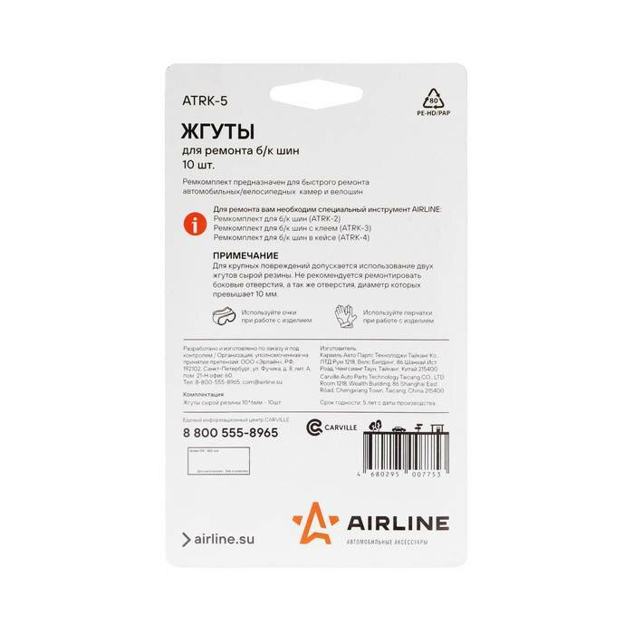 Жгуты Для Ремонта Б/К Шин 10 Шт. В Блистере AIRLINE арт. ATRK5