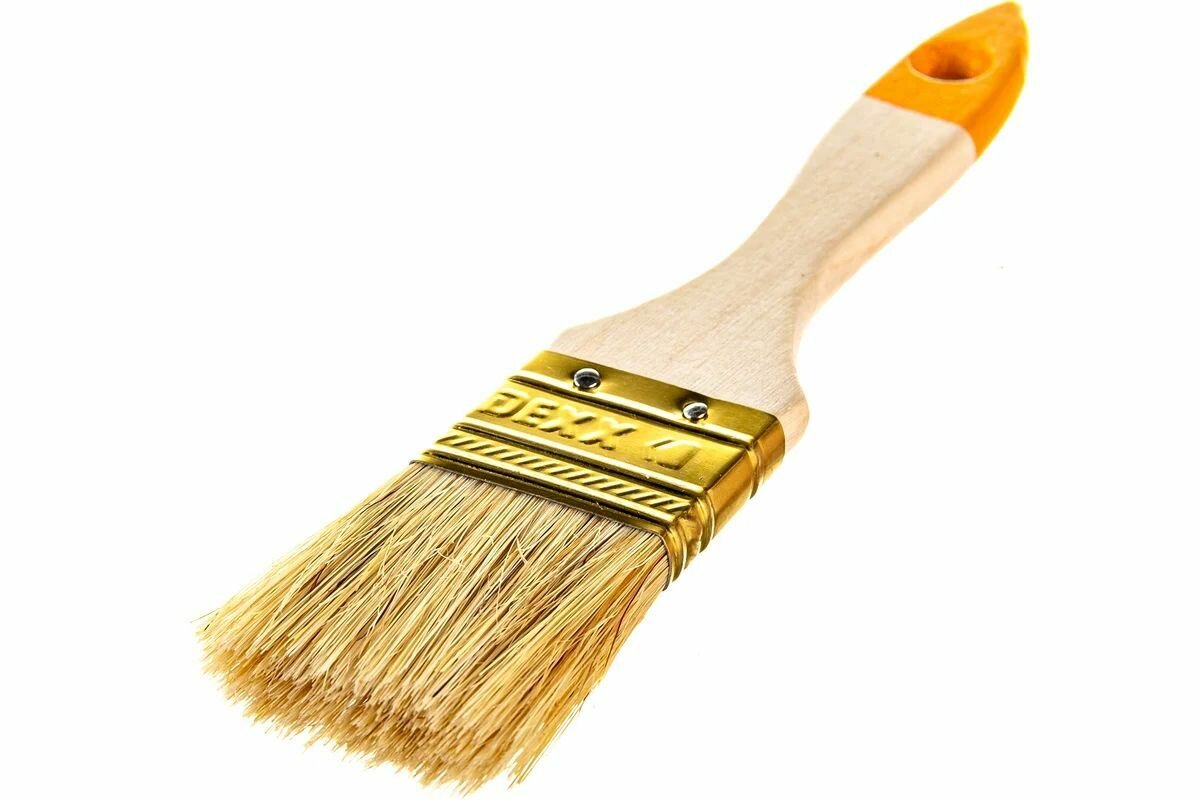 Кисть плоская DEXX, натуральная щетина, светлая натуральная щетина, деревянная ручка, 1 1/2"/38мм