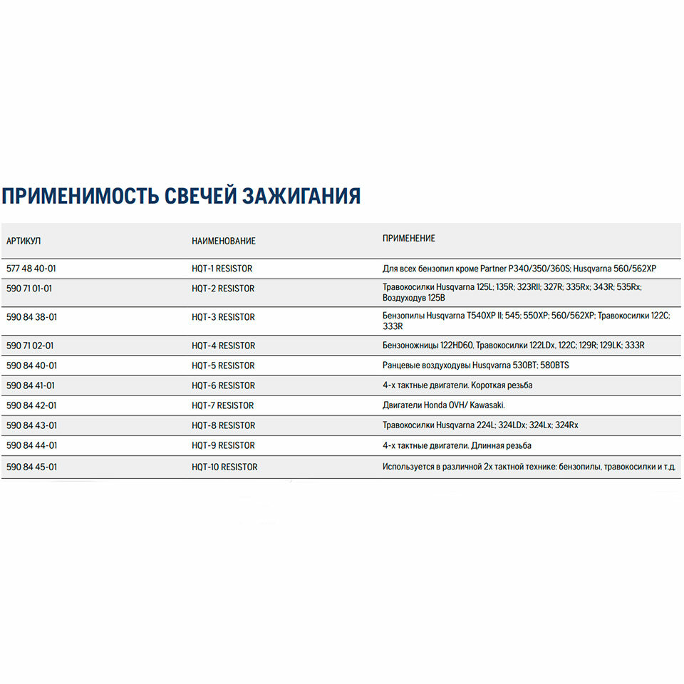 Свеча зажигания HQT-6 Husqvarna арт. 5908441-01 интересное: