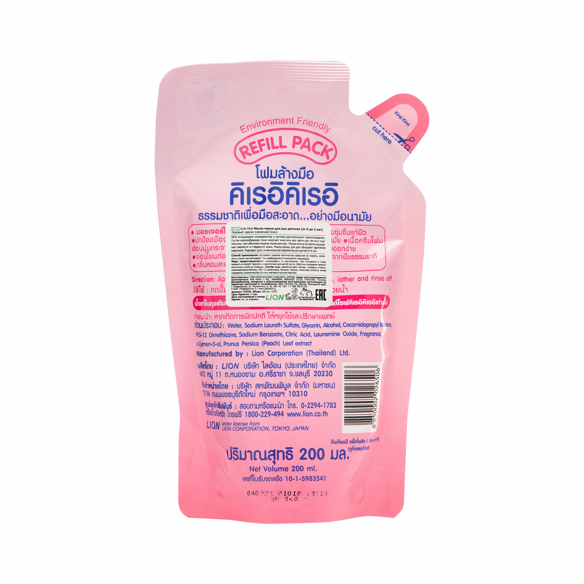 LION Thailand Мыло-пенка для рук детская(от 0 до 3лет)Роз.персик(запасной блок), 200 мл, LION Thailand