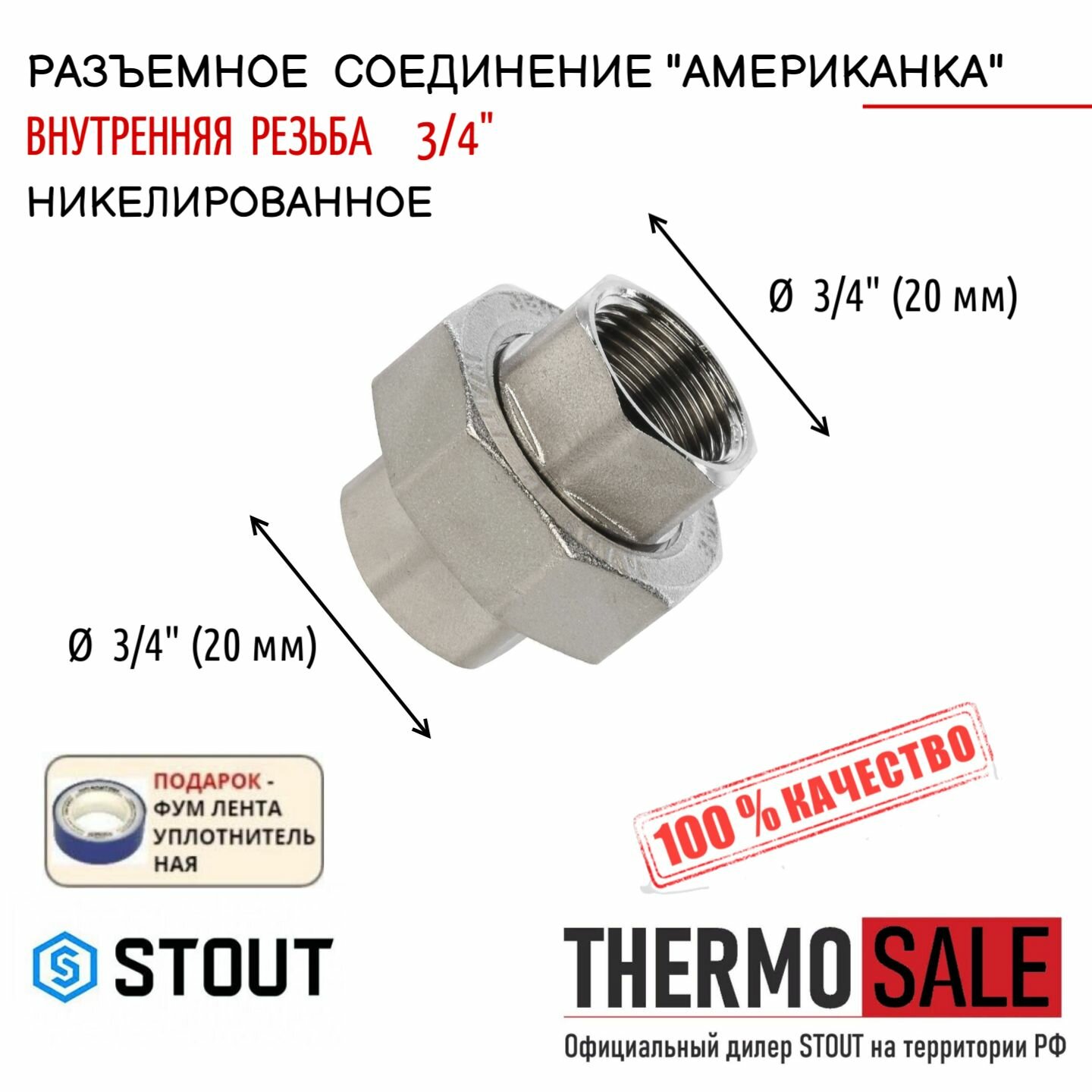 SFT-0034-000034 STOUT Разъемное соединение "американка" ВВ никелированное 3/4