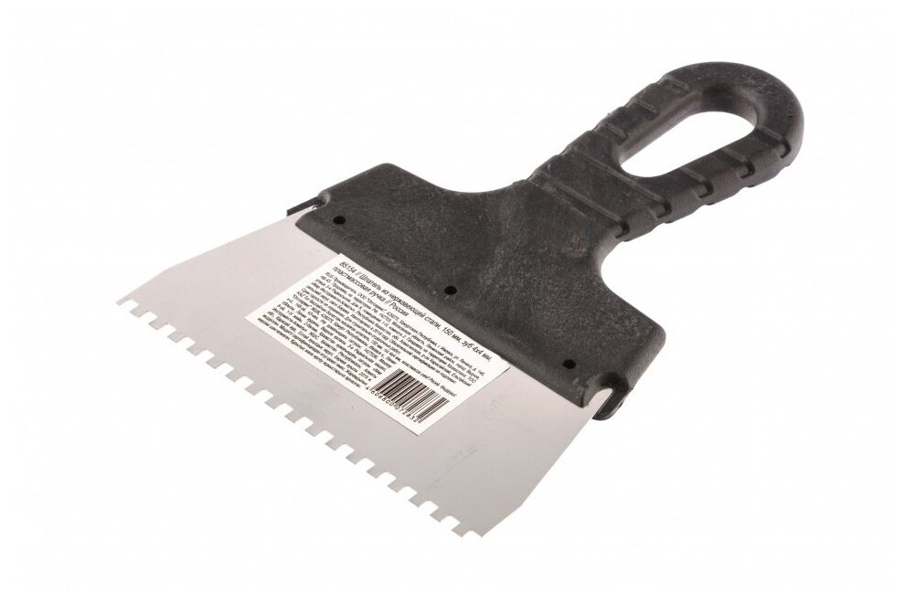 Шпатель из нержавеющей стали, 150 мм, зуб 4 х 4 мм, пластмассовая ручка 8545511 СИБРТЕХ 4606800059000