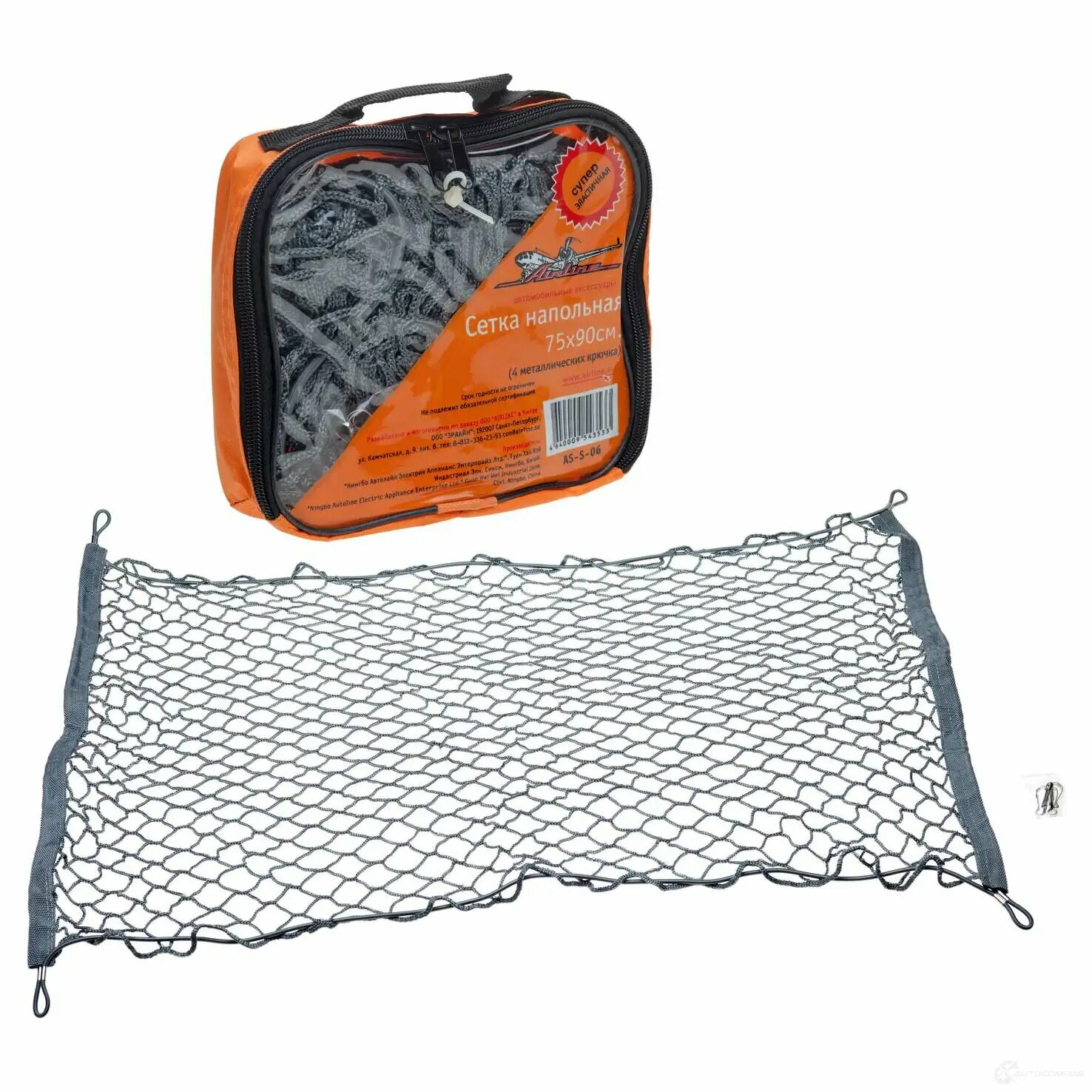 AIRLINE AS-S-06 Сетка напольная в багажник автомобиля 90x75 см. серая 4 металлических крючка сумка AIRLINE AS-S-06