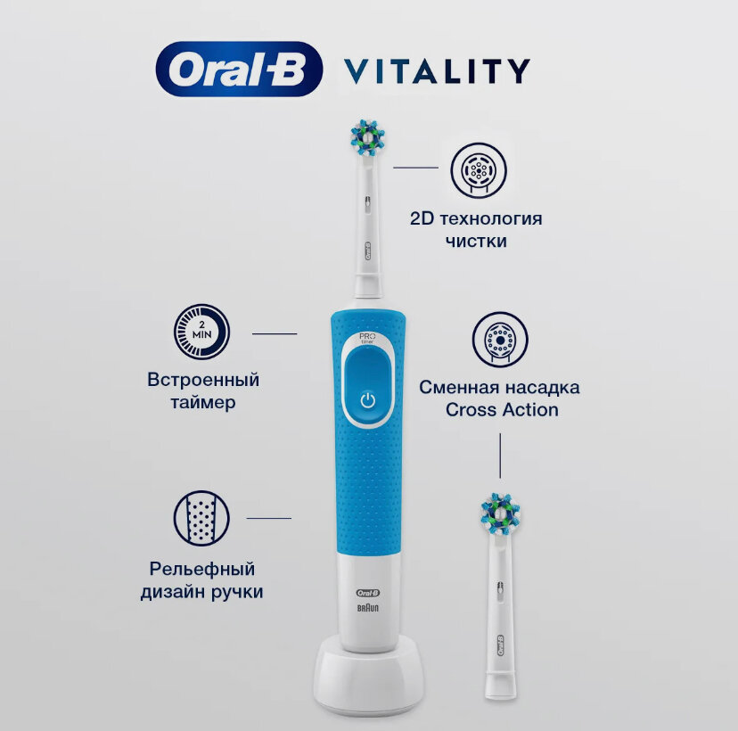 Электрическая зубная щетка Oral-B Vitality CrossAction D100.413.1, голубая