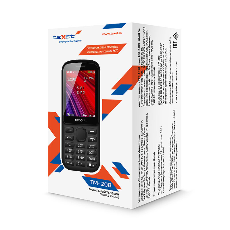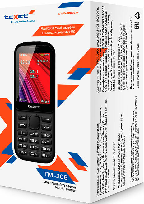 Мобильный телефон teXet TM-208 черный-красный