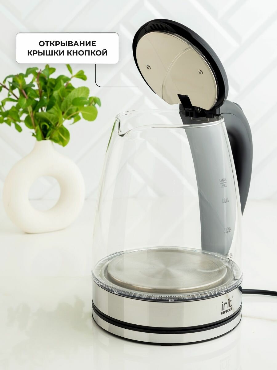 Чайник электрический Irit IR-1236, стекло, 1.8 л, 1500 Вт, подсветка, серебристый IRIT 4787993