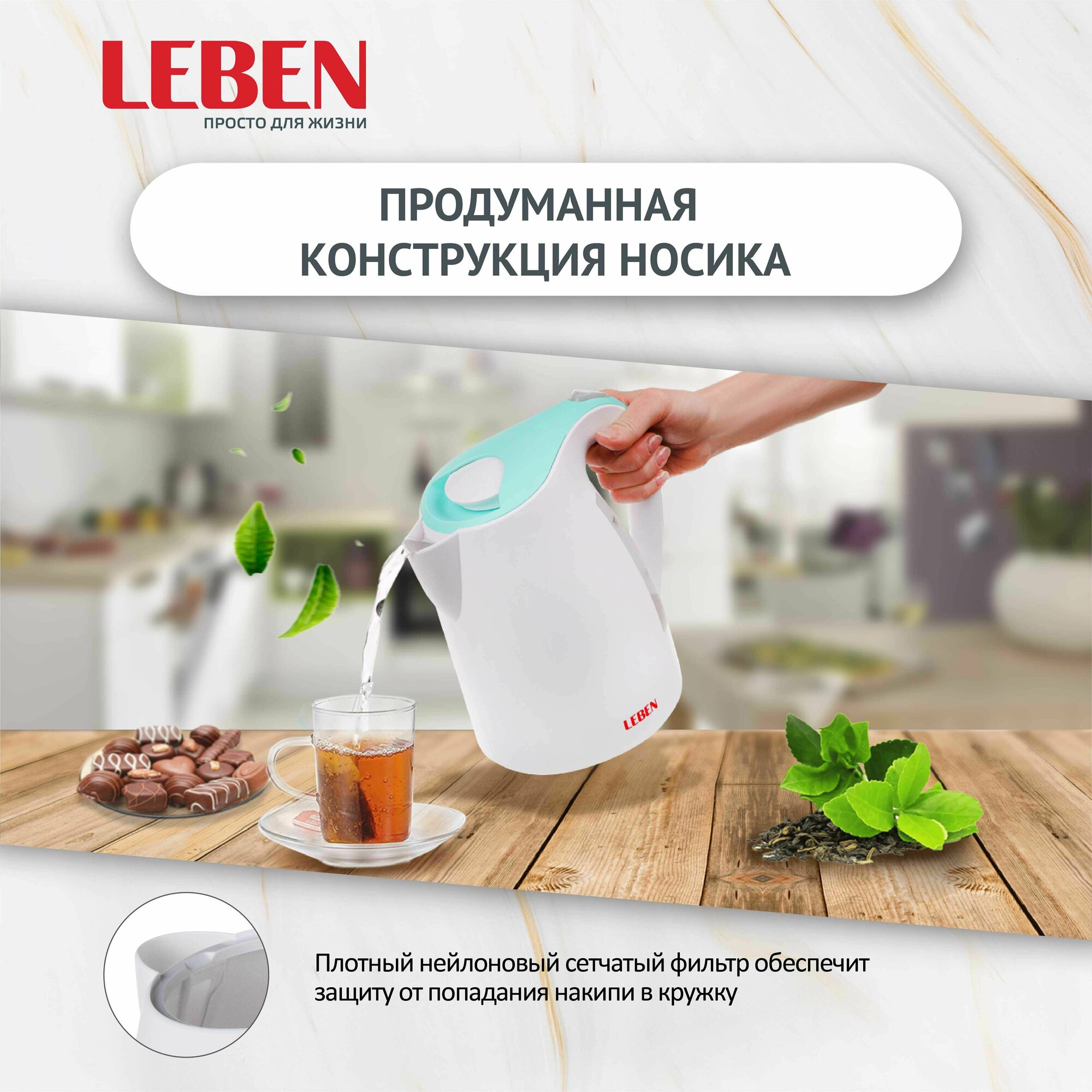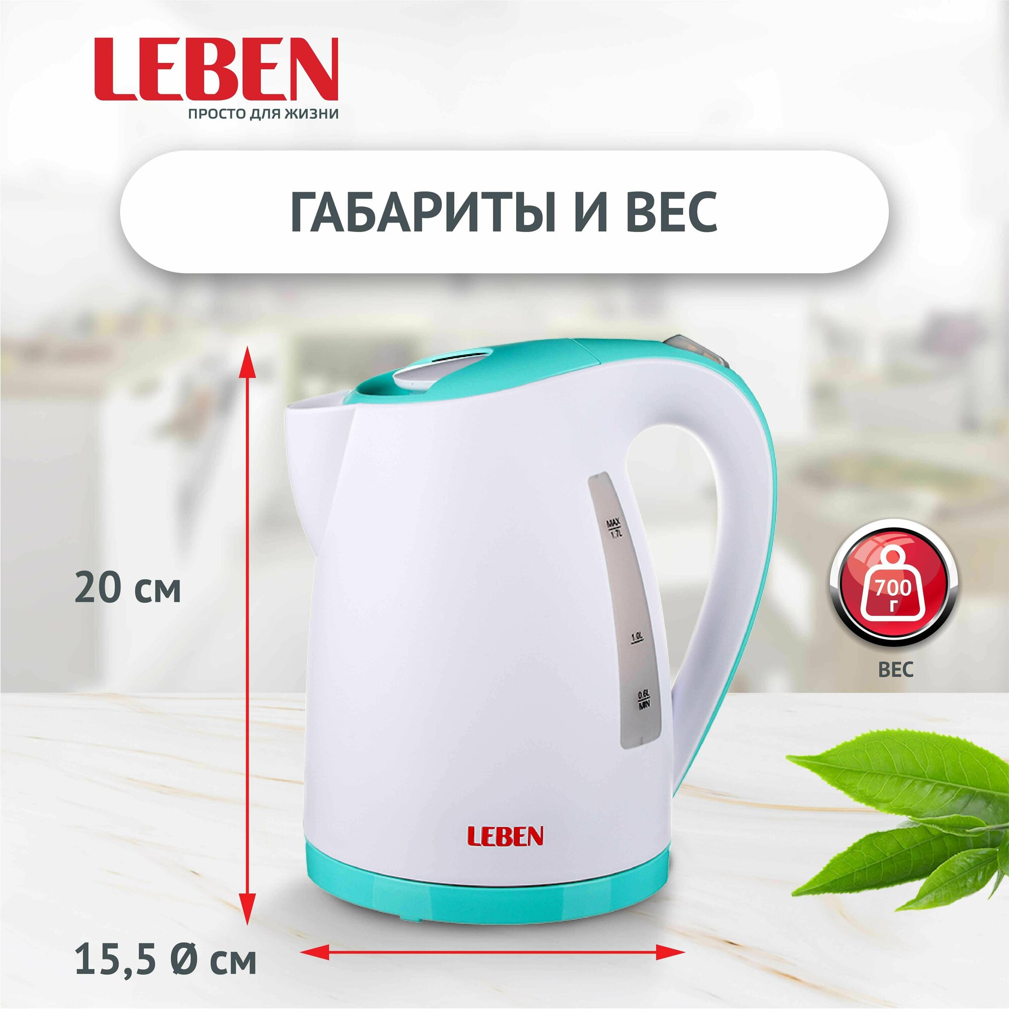 LEBEN Чайник электрический 1,7л, 1850Вт, пластик интересное: