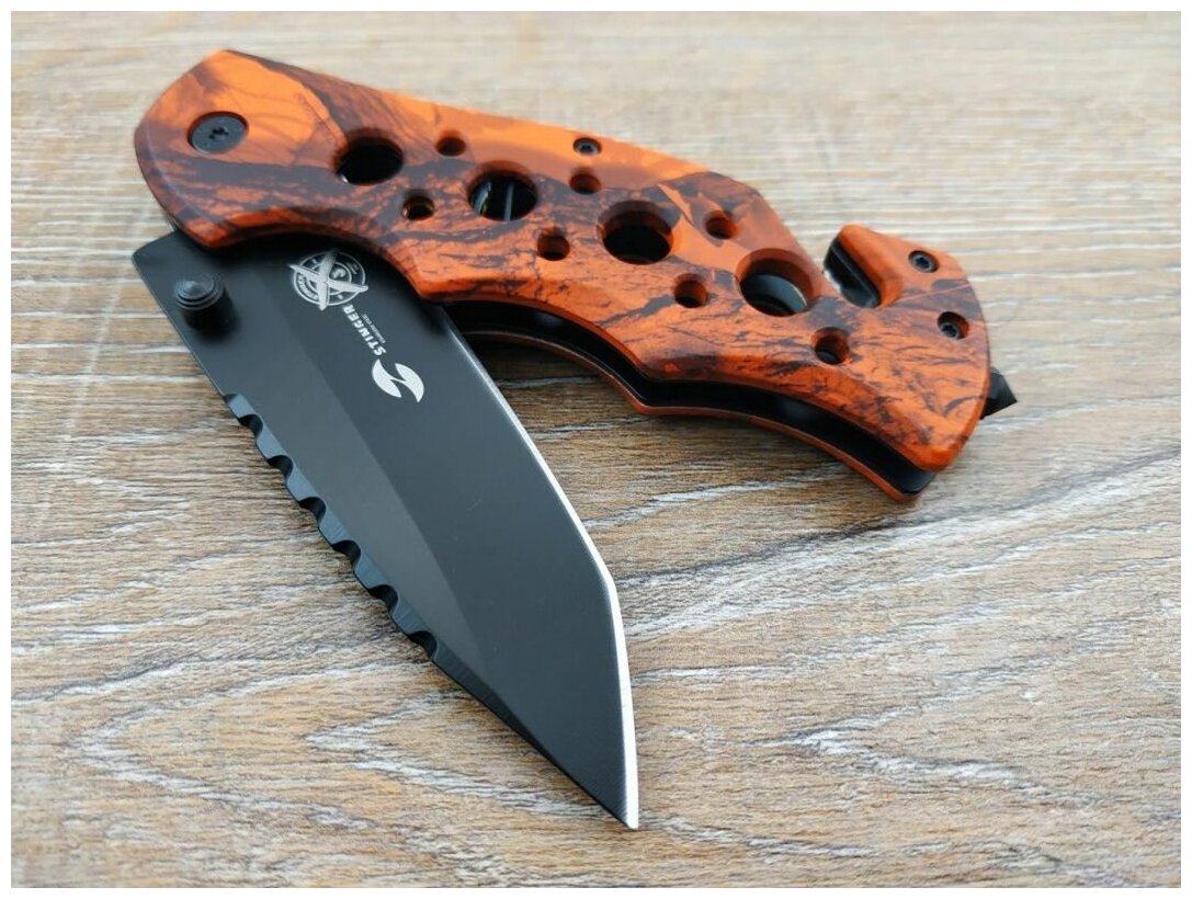 Нож складной Stinger, 86 мм, (чёрный), материал рукояти: алюминий (оранжевый камуфляж)
