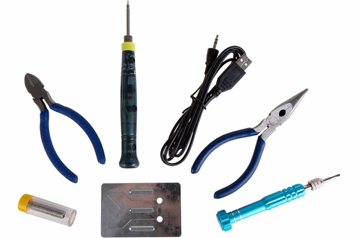 Набор для пайки (USB паяльник 8Вт, кусачки, тонкогубцы, подставка, припой, отвертка) 12-0168