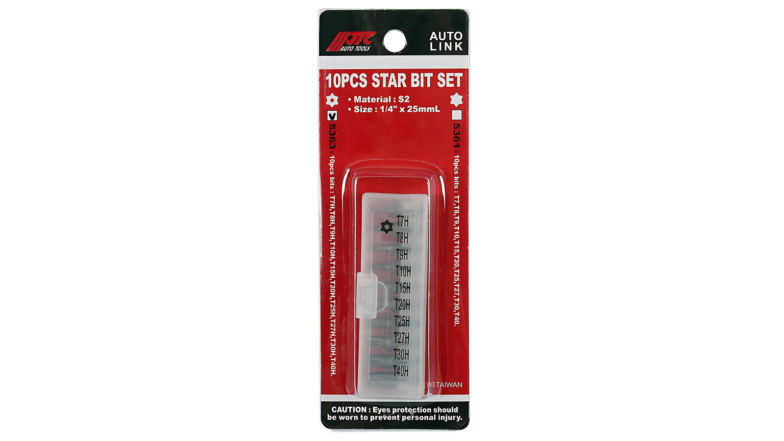 JTC JTC-5363 Набор бит 1/4" TORX T7H-T40H с отверстием 10 прметов в кейсе JTC