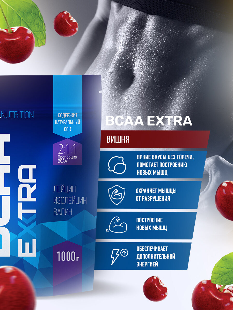 Аминокислоты BCAA (БЦАА), R-Line, BCAA Extra, 1000 г, Вишня