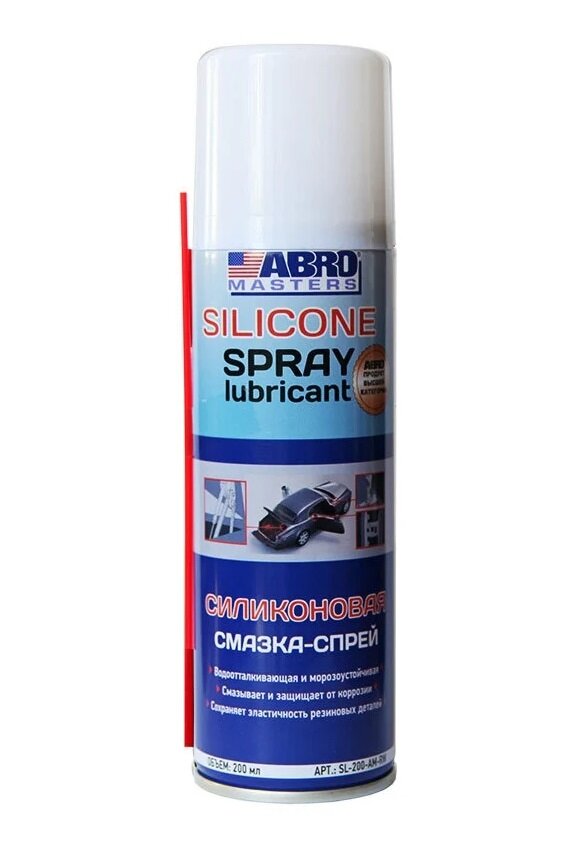 Смазка аэрозольная ABRO Masters Silicone Spray Lubricant многоцелевая, силиконовая, водостойкая, баллон 200мл, арт. SL-200-AM-RE