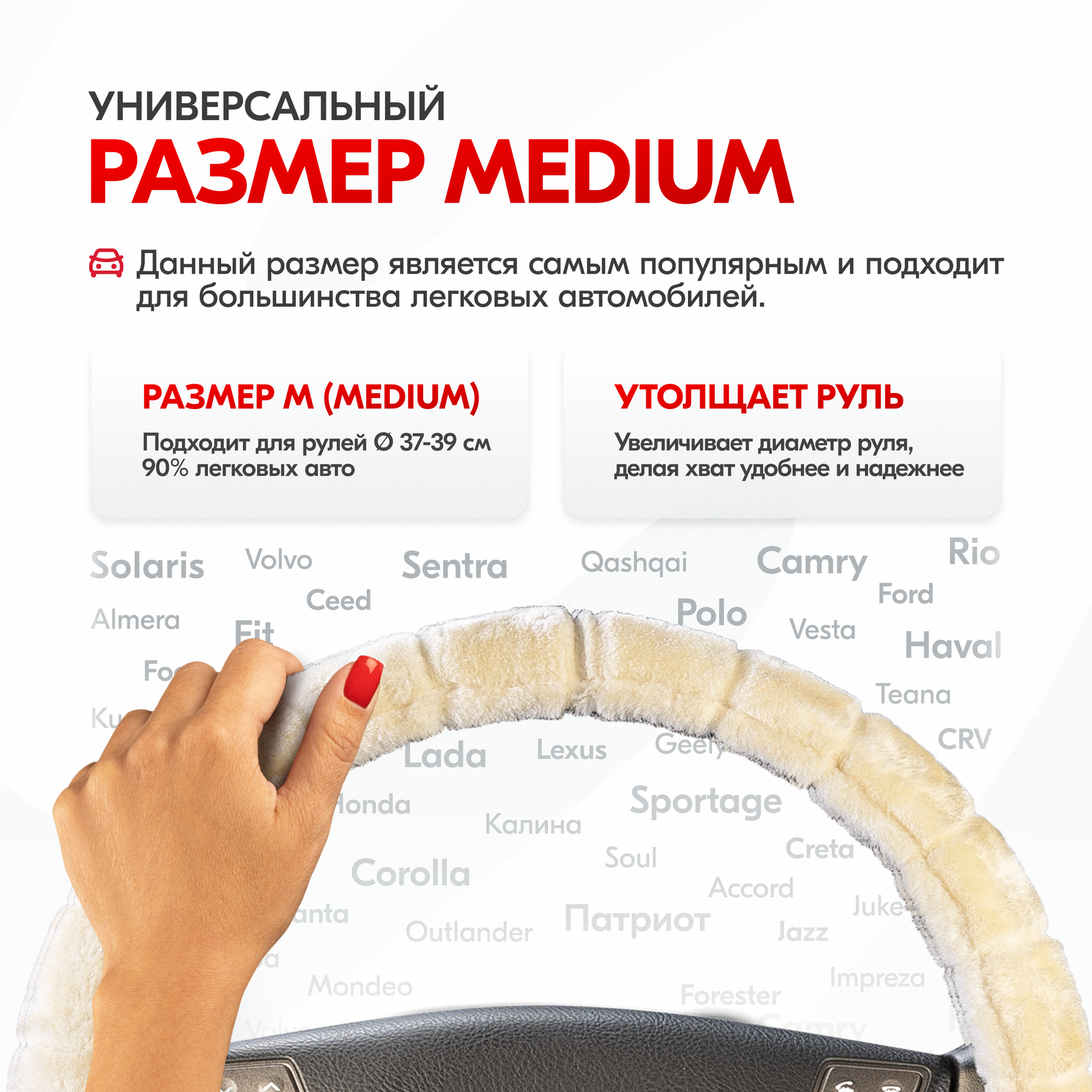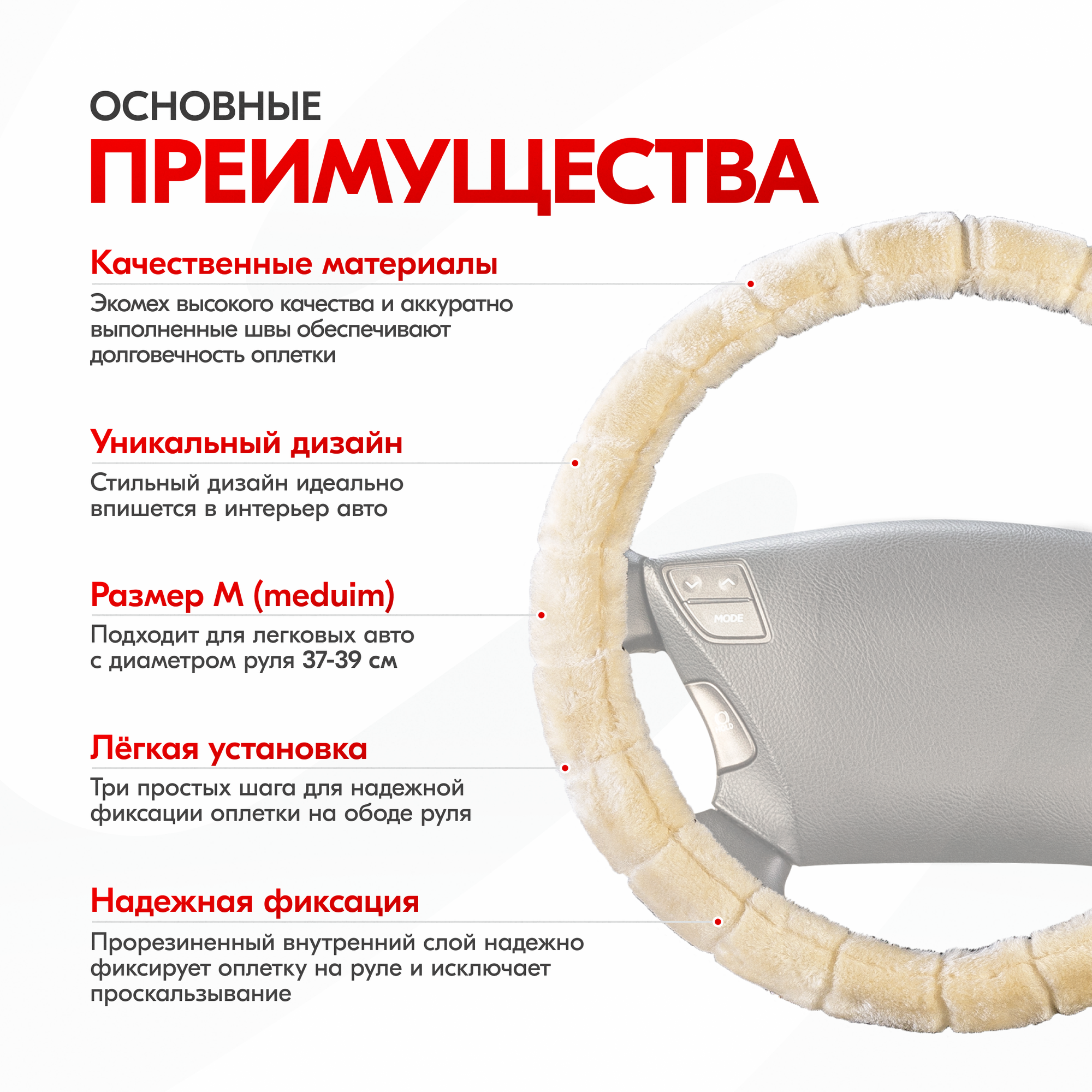 Оплетка руля SKYWAY Arctic-1, мех, размер M, диаметр руля 37/38/39 см, S01107023