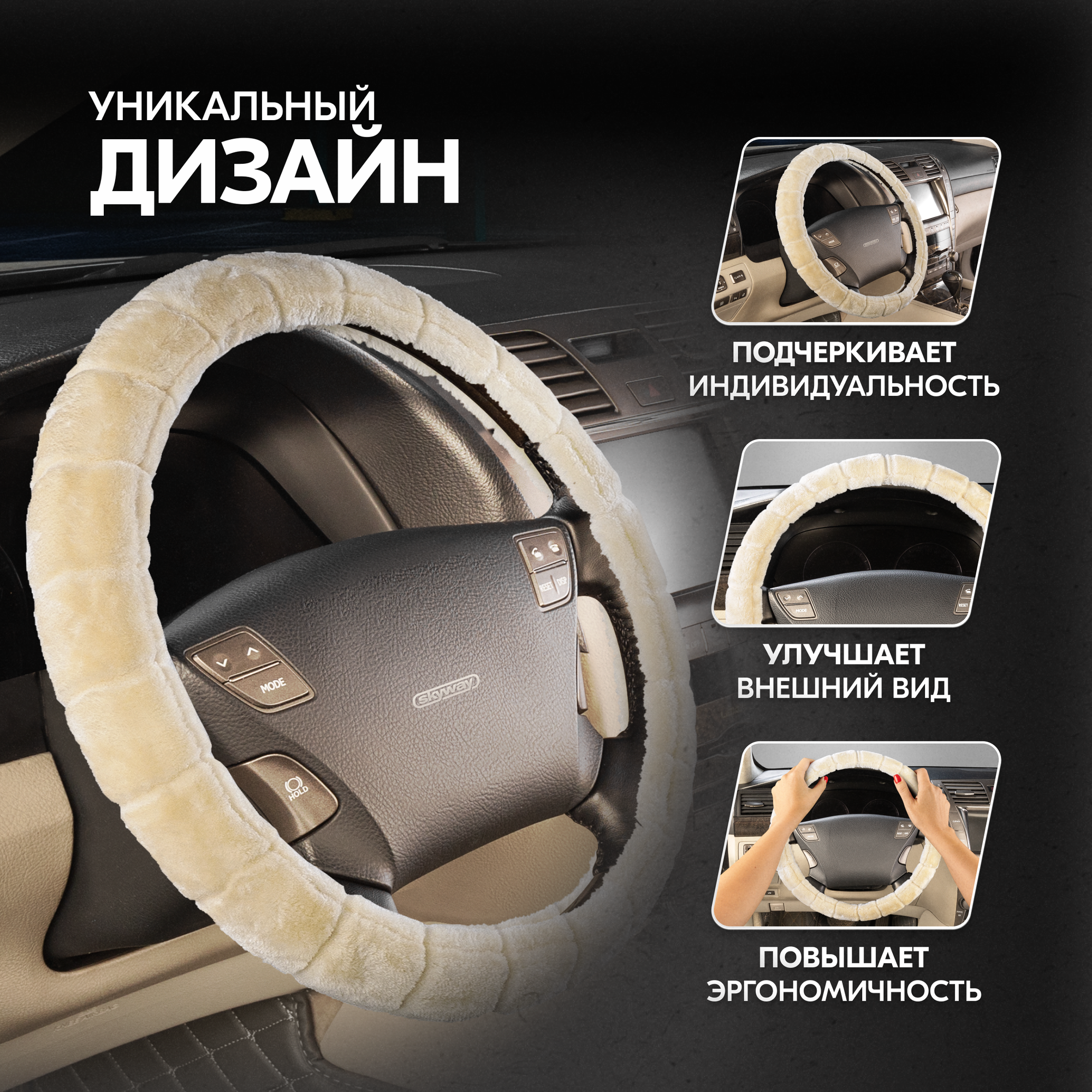 Оплётка руля SKYWAY меховая искуст бежевая с прострочкой ECO (М)