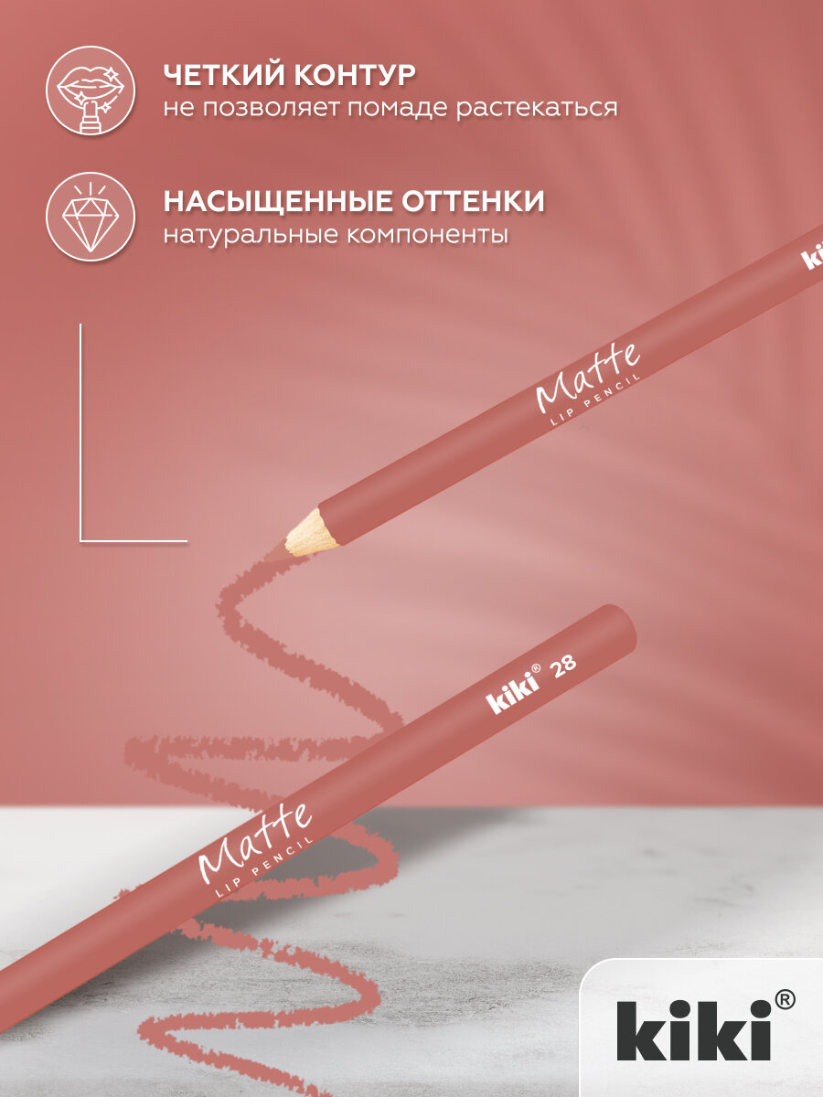Карандаш для губ kiki MATTE тон 28 пыльная роза, водостойкий, матовый, насыщенный цвет, косметический карандаш для губ