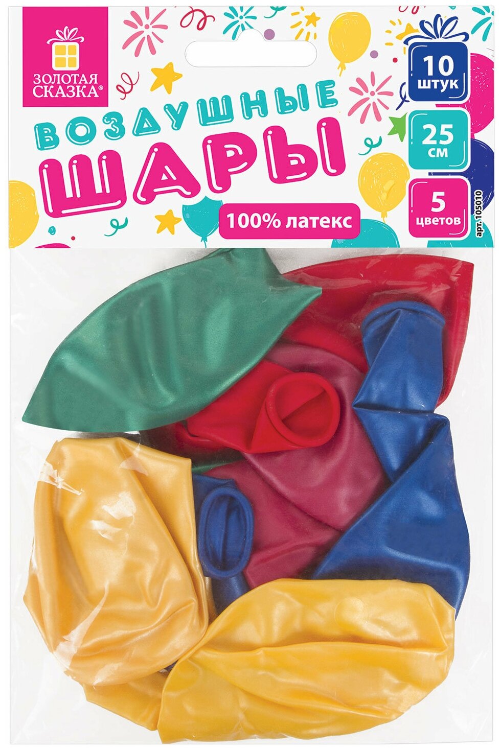 Шары воздушные золотая сказка, 10" (25 см), красные, пакет, 104998