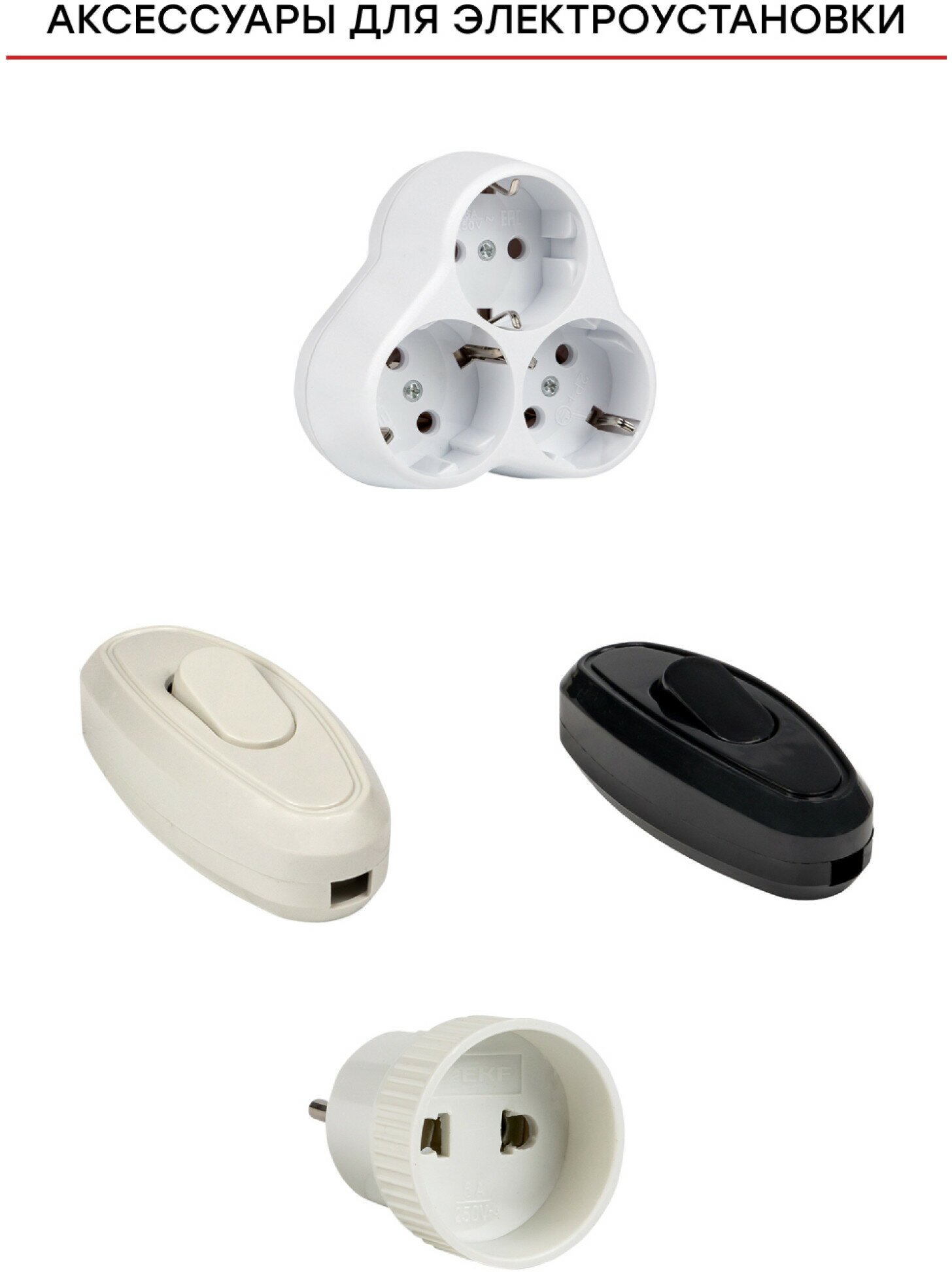 Выключатель на шнур для бра EKF проходной, белый, 6А APB6-10