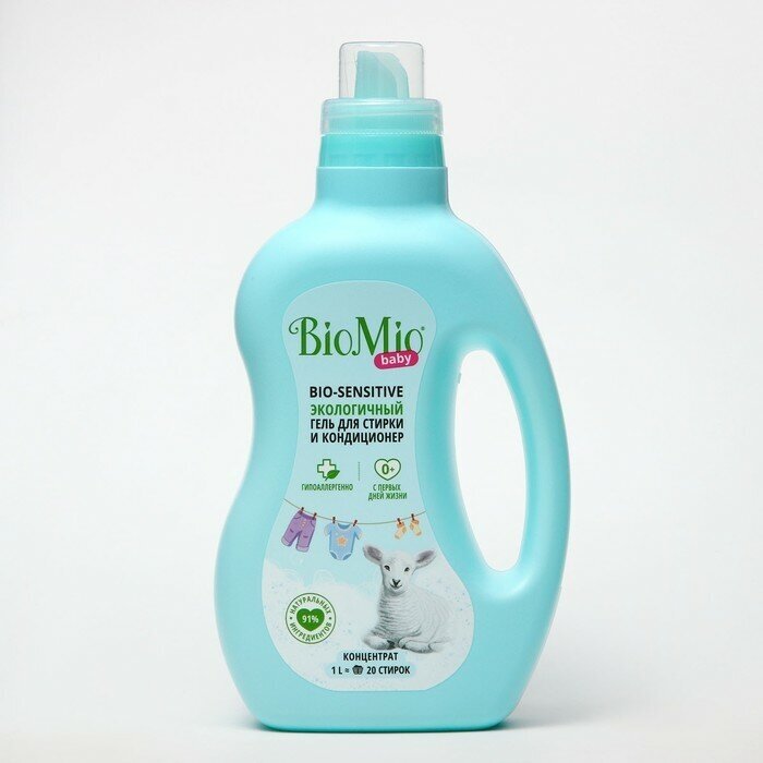 Гель для стирки BioMio Bio-Sensitive Baby, гель и кондиционер для детского белья, 1 л, бутылка
