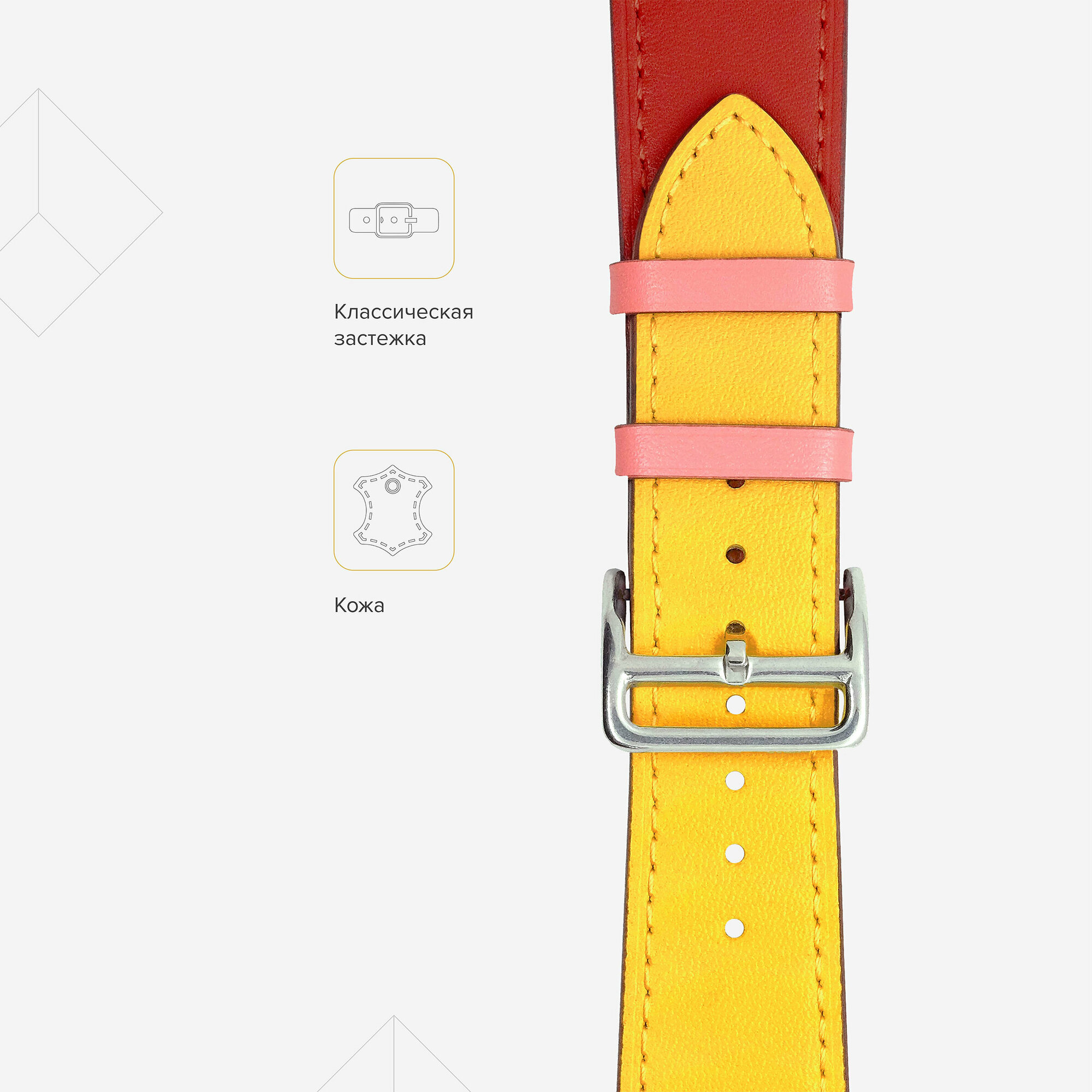 СохранитьКожаный ремешок для Apple Watch 38/40/41 mm Series 1-7, SE LYAMBDA MAIA LWA-03-40-RY, желтый / красный / розовый интересное: