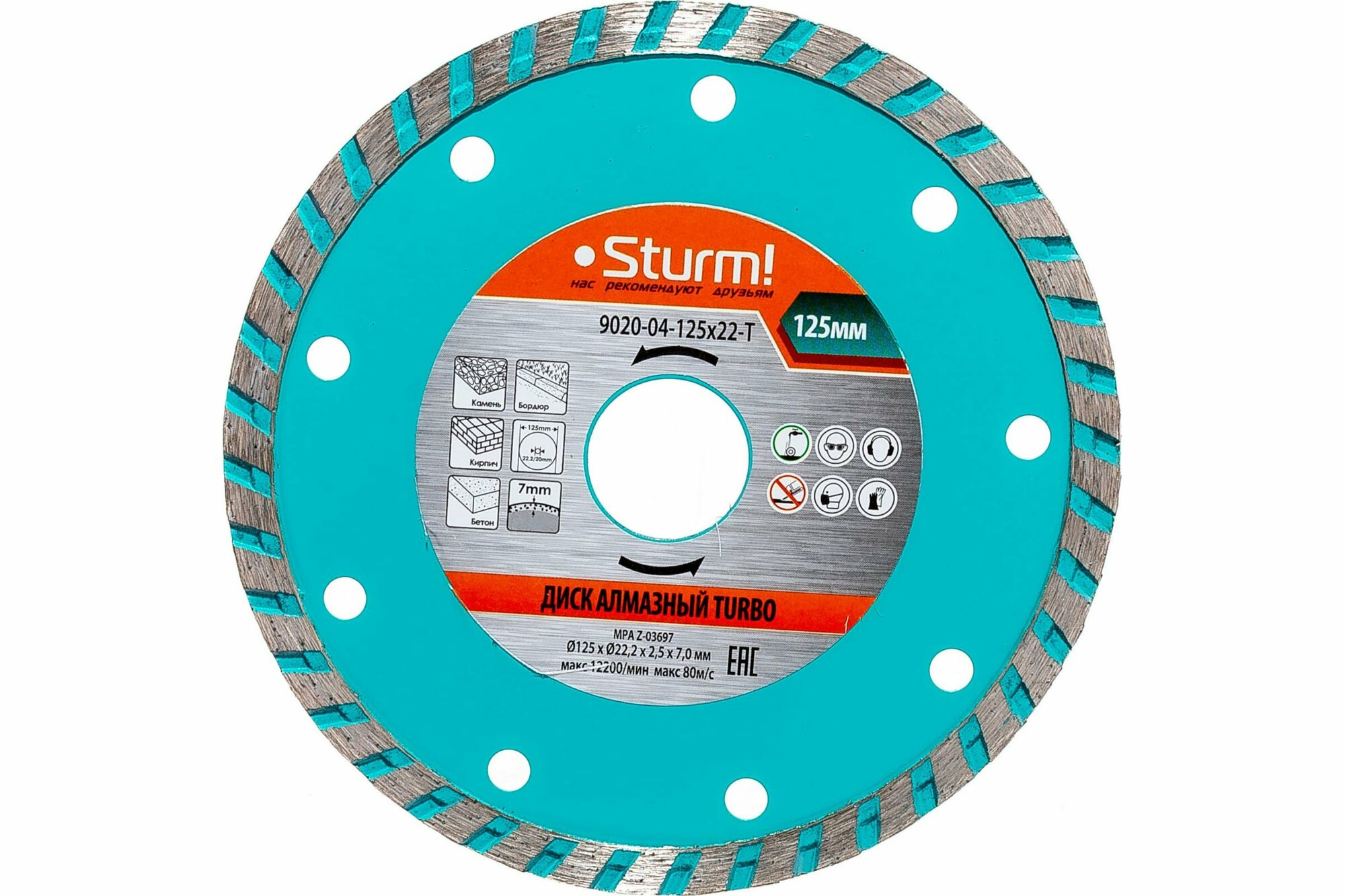 9020-04-125x22-T Алмазный диск, сухая резка, "Турбо" 125мм Sturm!