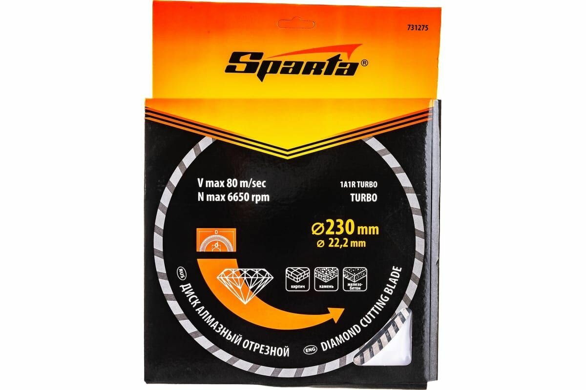 Диск алмазный SPARTA Turbo, универсальный, d230х22.2мм, сухой рез (731275), 1717931
