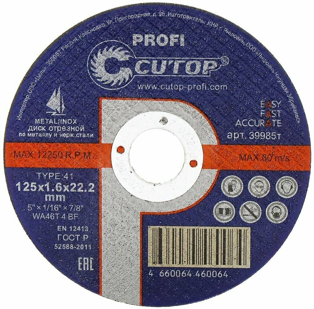 Диск отрезной 125 х 1.6 х 22.2 мм Cutop 39985т 1 шт.